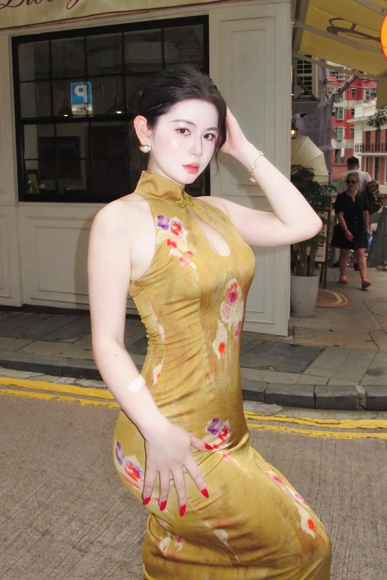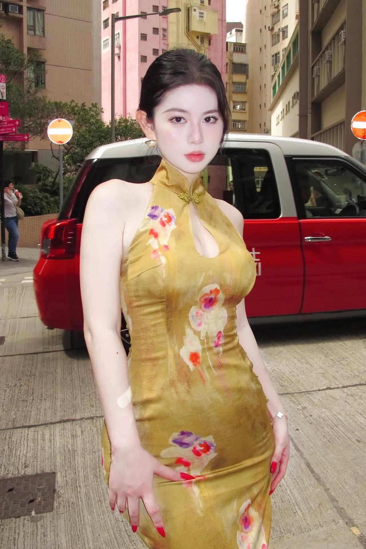 《街隅倩影》 金缕裁成贴体裳,花痕浮处暗生香。 红车侧畔凝眸立,一巷春风入港堂。 图片来自网络,侵删