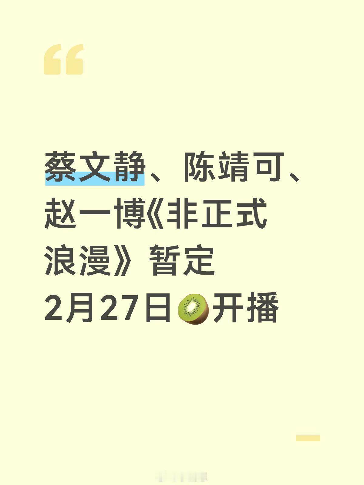 蔡文静、陈靖可、赵一博《非正式浪漫》暂定2月27日🥝开播非正式浪漫‖