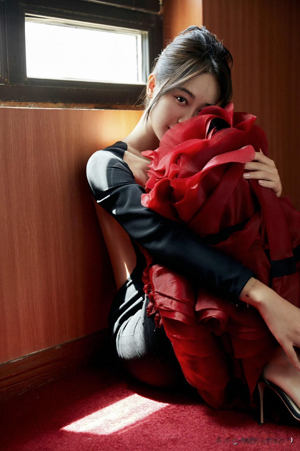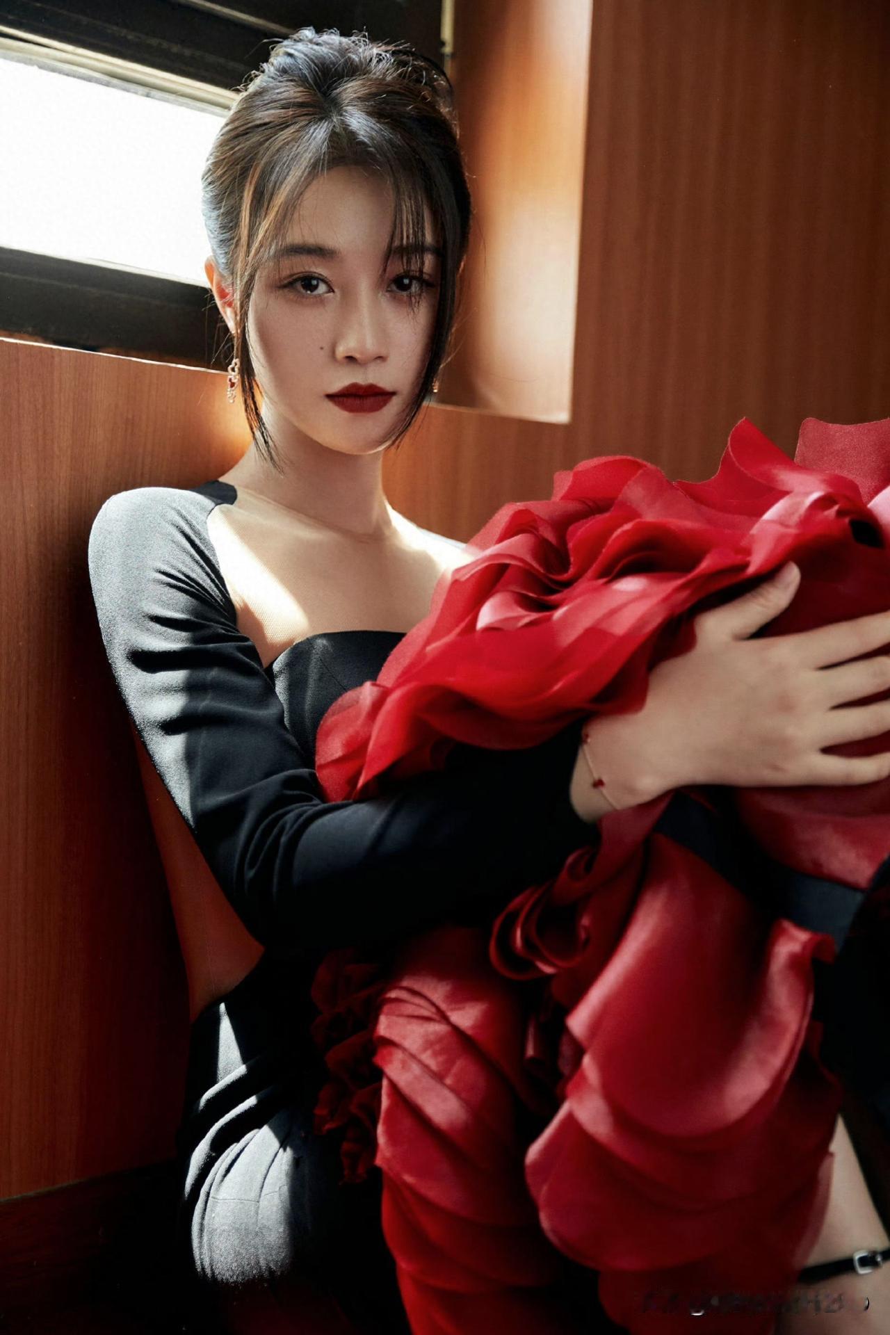杨紫红裙江畔大片,解锁明艳大气的新风格