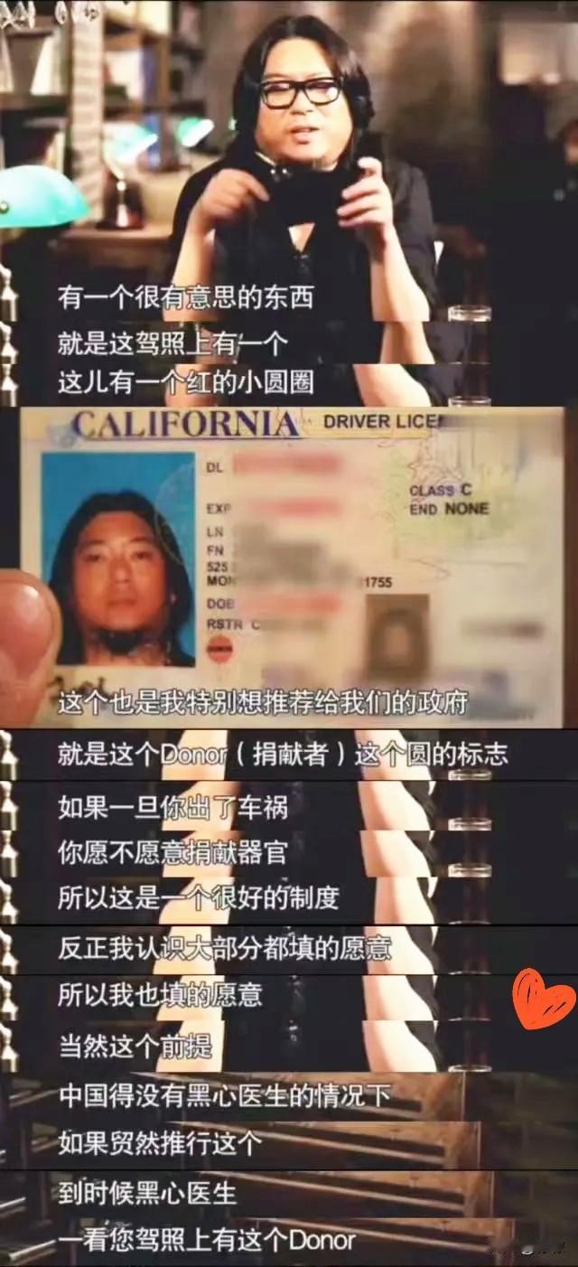 最近高晓松当年一段言论被网友翻出来了,让人听着不太舒服。他说自己在美国拿了驾照,特意提了驾照上的“Donor(捐献者)”标签,说只要出了车祸,签了这个标签就能捐献器官,还说这是美国很好的制度,深情呼吁大家办美国驾照时也填愿意。 其实器官捐献是件挺有意义的事,能让生命以另一种方式延续,这本身没什么问题。但非得拿美国的制度来说事,甚至隐隐透着“这才高级”的意思,就有点让人膈应了。咱国内早就有器官捐献制度了,身边不少人都在志愿登记平台上签了字,医院里也总有因为陌生人的捐献而重获新生的故事,这些难道不也是值得称赞的善意吗? 小区里的张大爷就是器官捐献志愿者,他说“人死了啥都带不走,能留点有用的帮别人,是积德”。去年他生病住院,还特意跟医生强调“要是真不行了,别忘了我签过的登记表”。这种朴素的善意,和美国驾照上的标签比起来,一点都不逊色,甚至更让人觉得实在——它不依托于某个国家的制度光环,就是普通人发自内心的善良。 高晓松那段话让人不舒服的地方,在于他把一个普世的善意行为,硬生生和“美国制度好”绑在了一起。好像只有美国的这种形式才值得推崇,咱自己的就不值一提。就像有人夸邻居家的花好看,这没问题,但要是非得说“你看人家的花比你家的香多了,你也得学着种成那样”,就显得有点刻意了。 器官捐献的核心是“自愿”和“善意”,跟哪个国家的制度没关系。美国有驾照标注的方式,咱中国有线上登记、线下签署的渠道,本质上都是为了让更多生命得到帮助。去年看到新闻,说我国器官捐献志愿登记人数早就过亿了,多少家庭因为这些捐献者重新有了盼头,这背后是无数普通人的大爱,难道不比单纯夸某个国家的制度更让人动容? 再说了,每个国家的制度都有自己的国情和历史背景。美国的器官捐献体系有它的特点,咱中国的也在不断完善,没必要非得比出个高低,更不能觉得“外国的月亮比较圆”。就像吃饭,有人爱吃面包,有人爱吃馒头,都是填饱肚子的方式,硬说面包比馒头高级,就有点没必要了。 真正该被推崇的,是器官捐献背后的善意本身,而不是它附着在哪个国家的制度上。不管是在美国驾照上打勾,还是在国内平台登记,只要是真心愿意帮助别人,都是值得尊重的。可要是借着夸别人的制度,来显得自己“有见识”,甚至隐隐贬低自己的,那就跑偏了——善意从来不需要靠吹捧别人来抬高自己。 各位读者你们怎么看?欢迎在评论区讨论。