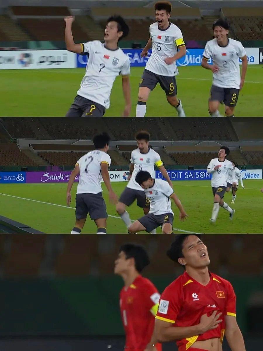 U23国足3比0越南U23越南队输不起,踢不过就打人。越南U23队这场半决赛真的是输球又输人,3号故意打拜合拉木被罚下去了。全场比赛越南被U23国足射门16次,全面处于下风。之前被寄予厚望的阮庭北也是隐身,在和王钰栋的直接对决中败下阵来。u23国足vs越南