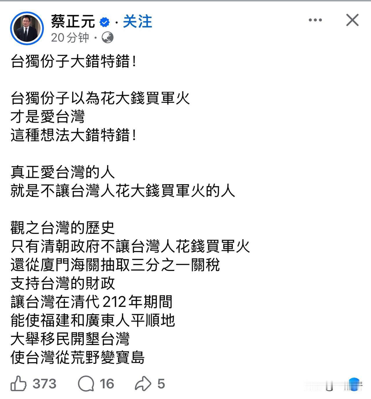 怪不得蔡正元要被台当局打压,蔡正元这话太直白了,台当局不喜欢。