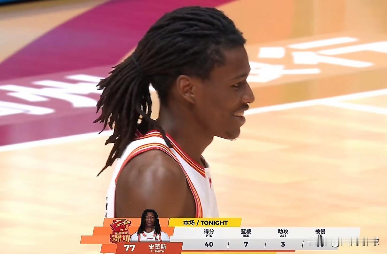 史密斯再这么打下去,深圳下赛季还能留住吗?昨晚深圳男篮在对阵浙江稠州男篮的比赛中,独砍43分7篮板3助攻,首节结束命中纵贯全场的三分压哨,惊艳全场,在比赛最后时刻浙江稠州外援约克5.1秒命中准绝杀,比分来到89:90,浙江正准备庆祝时,小史密斯外线接球不要两分,而是撤步三分线迎着防守一记跳投,稳稳命中,贡献反绝杀,哨声响起比分定格92:90,在客场拿下了浙江稠州金租!