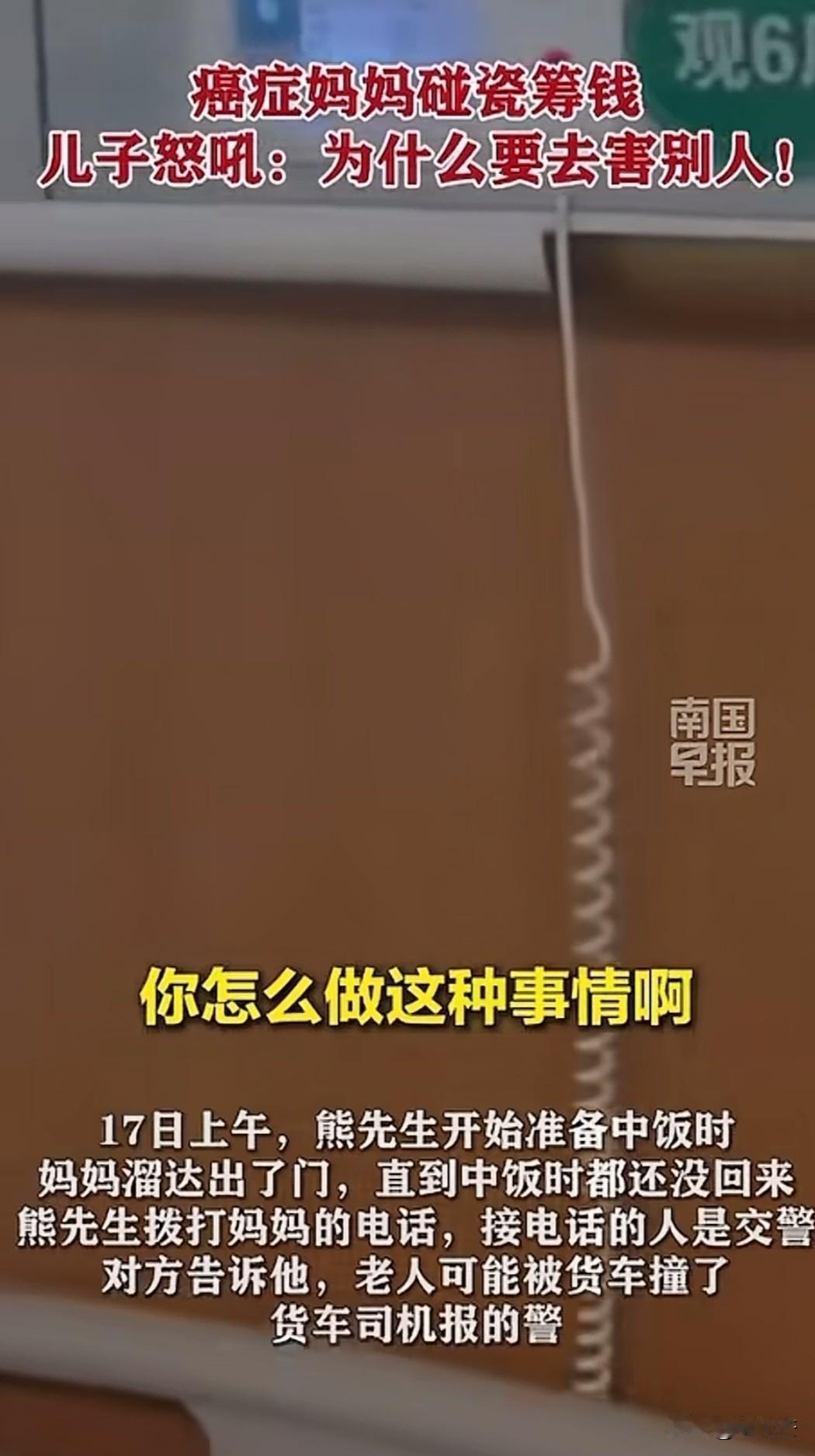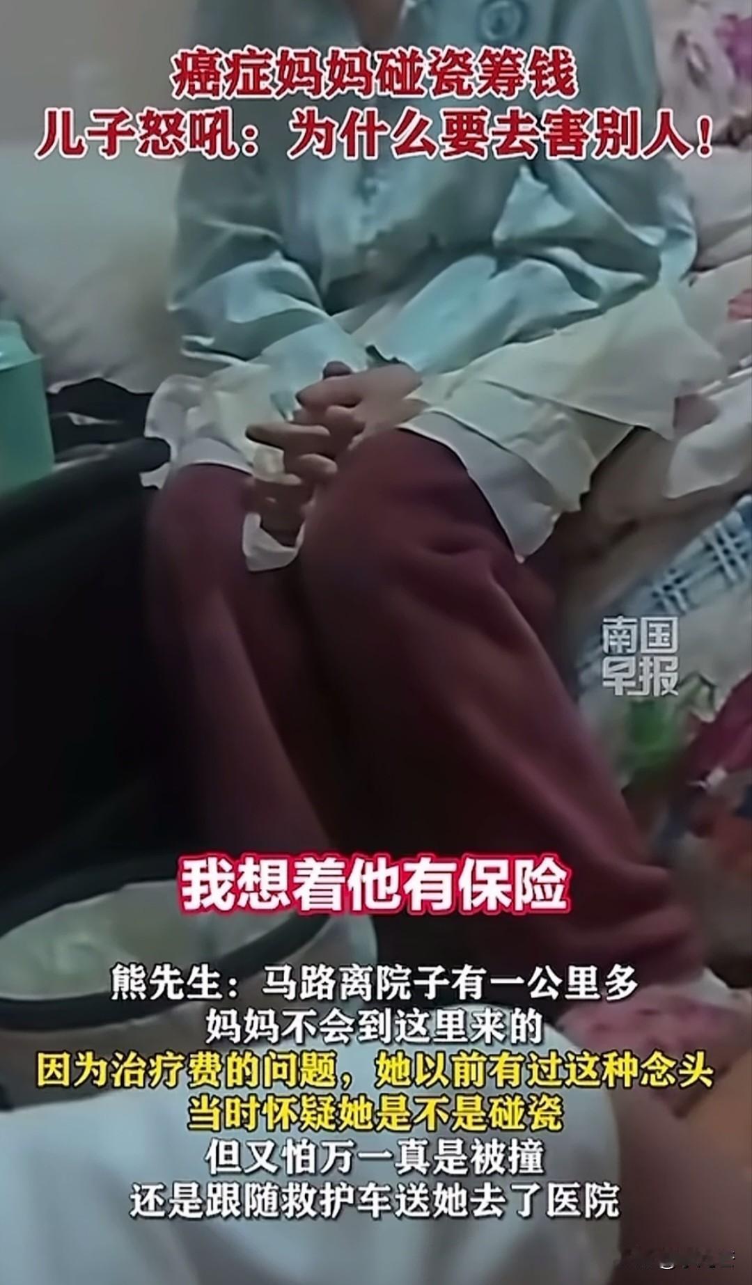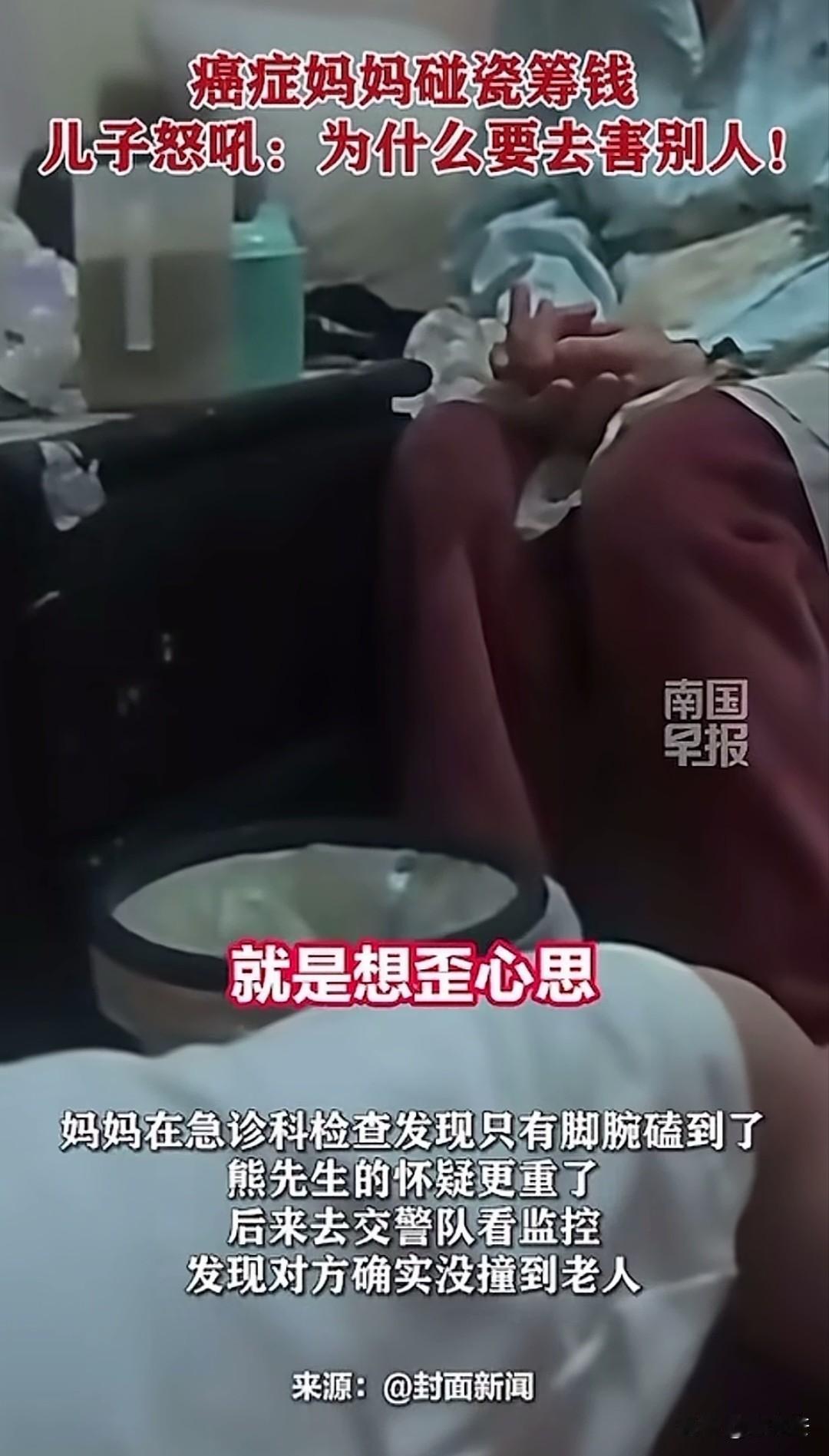 “他明明具备讹人的条件!”17号中午,正在做午饭的熊先生接到交警电话,对方称自己母亲被大货车撞了,大货车司机报了警,让他去看看老人情况。熊先生听完立马赶往现场,带着母亲去医院检查 ,不料检查结果让他愤怒不已,结果显示母亲只有脚踝处磕伤,行车记录仪显示对方没有撞到母亲! 熊先生说母亲患病后连小区门都不会出,如今却在一公里外的路上被大货车撞伤,他赶紧带着母亲去医院做了检查,可结果啥事没有。 怀疑蹊跷的熊先生又去看了行车记录仪,发现货车根本没撞到母亲,熊先生崩溃不已,当场质问母亲“这么大人,还做这种害人的事情,这就是碰瓷,讹人! 熊先生解释自己从小就是单亲家庭,母亲扶养他长大,去年母亲患癌后,一直都是他带着母亲治病,或许是母亲心疼他生活压力太大,才想出了个馊主意。 老人解释,自己只是想弄点钱花,考虑到大货车一般都有保险,即便出了事保险也能赔钱,只是想搞钱没想害人。 男子把利害关系给母亲说了一遍,那么做太不地道,就不是人干的事,到什么地步也不能那么害人。 跑货车家庭条件也一般,挣的也是血汗钱,要是稍微不注意,真的出了事,对别人家庭来说也是天塌了。 雪中送炭难,锦上添花易,生活如此窘迫还没有歪心眼,他不讹人,也不想母亲讹人,即便自己的日子很苦,却从未萌生害人之心,能坚守内心的原则与底线,三观很正!