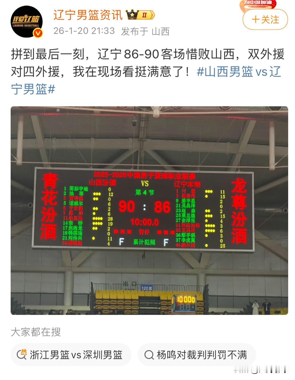 输得不冤,昨晚辽宁本钢86:90输给了山西汾酒,新人都得到了锻炼,双外援对四外援,老将赵继伟连续两记三分打停对手和从三分线外飞扑过来,狠狠摔在篮架上,证明了自己已是拼尽全力,赵继伟拿下15分6篮板7助攻,莫兰德15分15篮板,威尔斯25分6篮板3助攻!