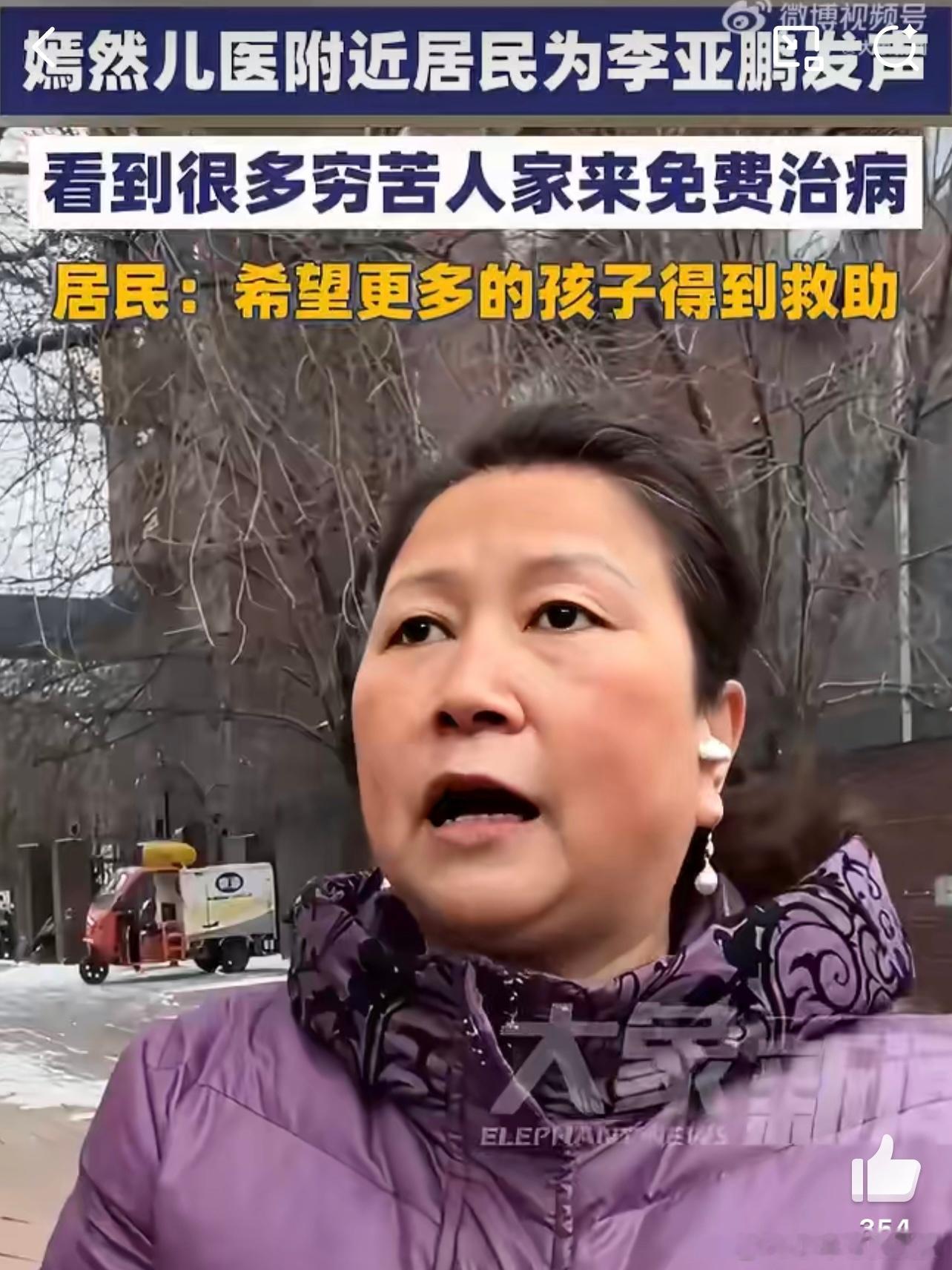 嫣然儿医附近居民为李亚鹏发声希望度过难关