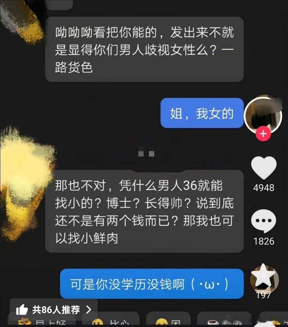 女孩因为说了句“他哥这个条件都喜欢年轻的”,后台被一群大姐疯狂私信。