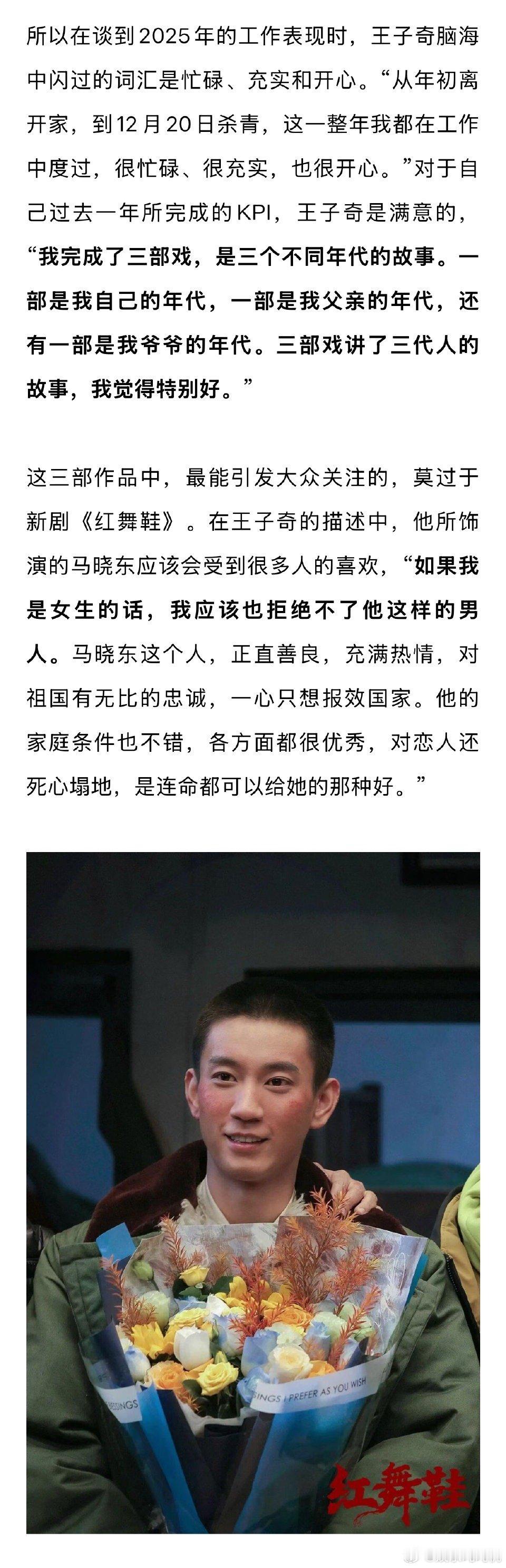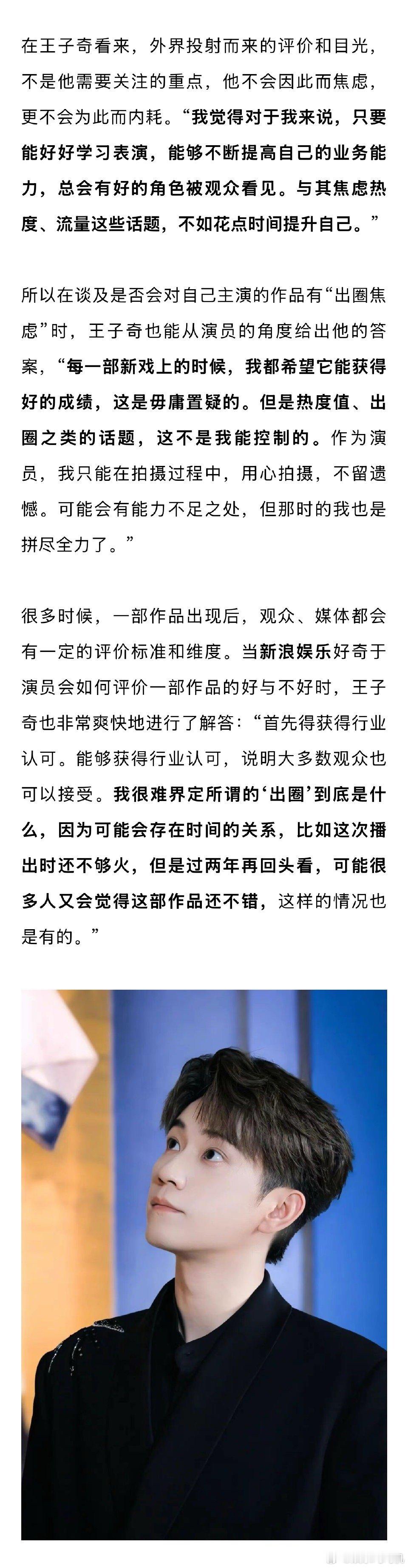 王子奇说自己无法拒绝萧瑾瑜王子奇说年龄不是焦虑而是财富 他对于演员该做什么有很清晰的边界感。听取有益的建议,同时坚持做自己,专注在表演这条路上深耕,这种定力在年轻演员中并不多见。
