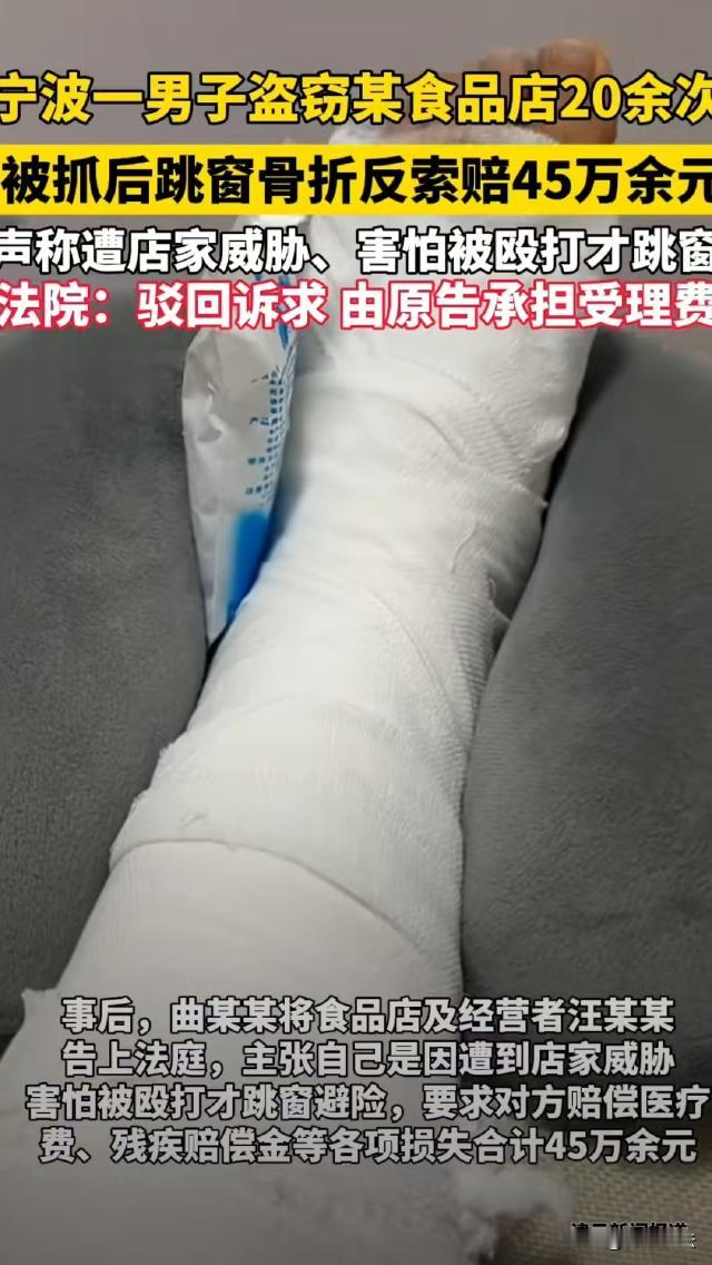浙江宁波,男子盗窃食品店20多次,最后一次被逮着正着,他不想赔钱,借口要去二楼上厕所跳窗逃跑,结果腿摔折了,男子觉得自己吃了亏,竟然起诉食品店,要求赔偿医疗费、伤残赔偿金等共计459579.60元。 据红星新闻等报道,汪某某在北仑区开了一家食品店,可2023年8月开始,店里经常丢东西。 通过查看监控,汪某某发现偷他东西的是一名男子,从8月开始,到10月期间,这名男子一共偷了他20多次。 汪某某气得眼冒金星,偷他一次两次他也就忍了,可这个人逮着他一个人薅羊毛,这不是欺负人吗?汪某某决定给这个小偷一个教训。 10月3号晚上,汪某某发现小偷又来了!早有准备的汪某某直接将小偷逮个正着。 王某某气愤地要求小偷曲某某赔钱,可曲某某耷拉着脑袋,说他没带钱,也没带手机。 汪某某接连多次被偷,早就憋了一肚子火,说就算曲某某没钱也得赔,让他自己想办法。 曲某某见没这么容易脱身,就说让汪某某跟着他一起去找他朋友筹钱。 俗话说人以类聚,物以群分,曲某某没钱,他的朋友也和他一样是穷光蛋。 没筹到钱,曲某某只好先跟着汪某某回到他店里。 汪某某对曲某某说,他不是偷自己一回两回了,这次必须把钱补上,如果不赔钱,他就报警。 曲某某恳求汪某某不要报警,说他会想办法凑钱赔汪某某。 不多大会,曲某某说想上厕所,汪某某让他自己去二楼的卫生间。 结果曲某某根本不是去上厕所,而是想找机会溜之大吉。 进入厕所后,曲某某推开窗户,不顾一切从窗户里跳了出去。 谁知天黑看不清,曲某某竟然摔倒了,还造成了双侧跟骨粉碎性骨折。 汪某某听见外面扑通一声,一看卫生间没人了,又听见曲某某在窗户外面不断哎哟,就赶紧报了警,还将曲某某送去了医 院。 随后,曲某某因盗窃罪被提起公诉。 根据《刑法》第二百六十四条,盗窃公私财物,数额较大的,或者多次盗窃、入户盗窃、携带凶器盗窃、扒窃的,处三年以下有期徒刑、拘役或者管制,并处或者单处罚金。 此外,《最高人民法院、最高人民检察院关于办理盗窃刑事案件适用法律若干问题的解释》第三条规定,二年内盗窃三次以上的,应当认定为多次盗窃。 曲某某两个月内在汪某某店里盗窃20多次,构成了多次盗窃,所以,即便盗窃金额未达数额较大标准,最终还是被判处拘役并处罚金。 可事情并没有就此完结,曲某某能两个月盗窃同一家店20多次,就证明他的脑回路和别人不一样。 腿摔断后,曲某某竟然讹上了汪某某,说汪某某把他拘禁在房间里威胁他,他害怕被打才逼不得已跳窗逃生,属于紧急避险。 出狱后,曲某某更是直接将汪某某起诉了,要求他赔偿自己医疗费、误工费、营养费、伤残赔偿金等,共计459579.60元。 那么,到底什么是紧急避险?曲某某是否构成紧急避险? 《民法典》第一百八十二条规定,紧急避险是指为了使公共利益、本人或者他人的人身和其他权利免受正在发生的危险,不得已而采取的损害较小的另一方的合法利益,以保护较大的合法权益的行为。 庭审时,汪某某称他并没有限制曲某某的人身自由,他上厕所的时候也没有跟着他。 而且,民警的讯问笔录及刑事判决书,以及曲某某的检查报告也证明,曲某某只有跟骨骨折,全身上下不存在任何殴打痕迹。 这说明,汪某某并没有实施不法侵害,曲某某所谓被拘禁和威胁的说法没有证据支持。 而且,曲某某多次盗窃汪某某的店铺,此次被抓后汪某某要求赔钱是合理的维权行为 。 最后,曲某某有多种途径解决问题,并非只能通过跳窗这种高风险方式,跳窗并非不得已之举。因此,曲某某的行为不构成紧急避险。 根据《民法典》第一千一百六十五条规定,行为人因过错侵害他人民事权益造成损害的,应当承担侵权责任。 汪某某抓住屡次盗窃自己店铺的曲某某,并要求其赔偿损失,是在合理维护自身的合法权益,没有超出必要的限度。 而且,汪某某在整个过程中没有对曲某某实施任何侵害行为,曲某某跳窗是他自己主动做出的高危险选择。所以,汪某某不需要对曲某某的受伤承担侵权责任。 最终,曲某某的诉讼请求被驳回。