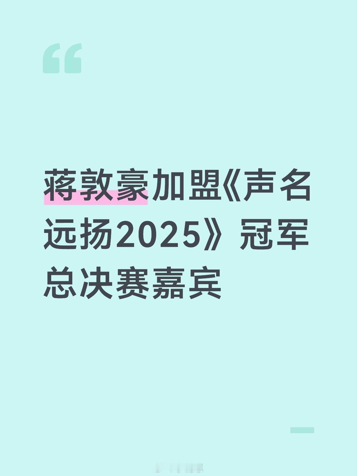 蒋敦豪加盟《声名远扬2025》冠军总决赛嘉宾声名远扬2025‖蒋敦豪‖蒋敦豪