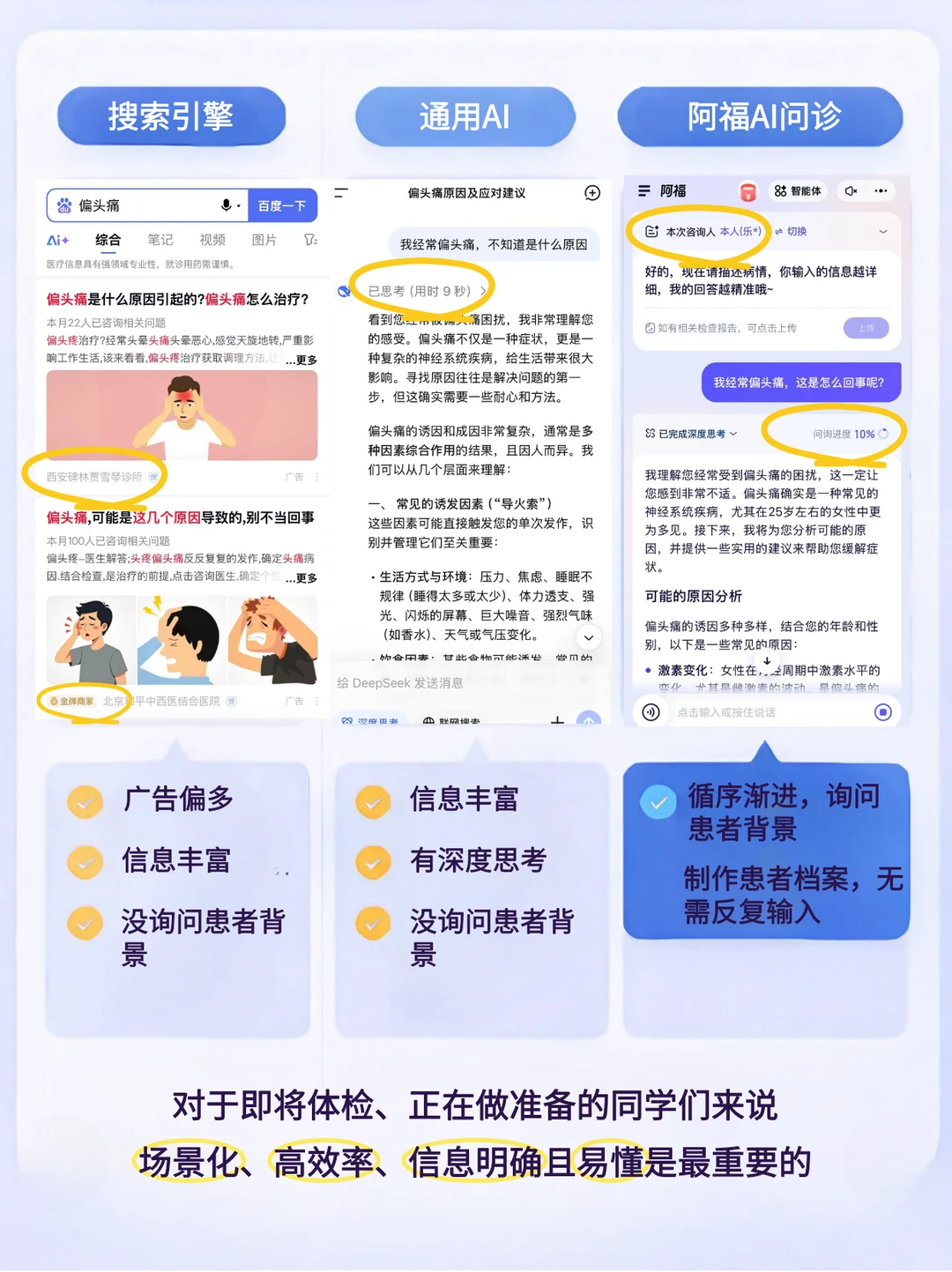 朋友的孩子在准备军队文职体检,他视力边缘、还有点轻微心律不齐,网上信息又杂又吓人,干脆一口气测了三个产品:某度、DS,还有最近挺火的健康AI——阿福。结果真的大不一样!