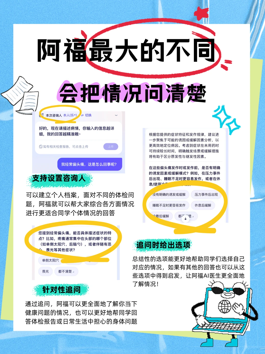 我根据朋友孩子的情况,跟着它一步步答,它居然还提醒我: