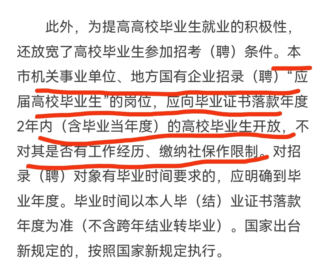 【本市央国企、事业单位应届生招聘不再以缴纳社保为限制条件,两年择业期内均可】