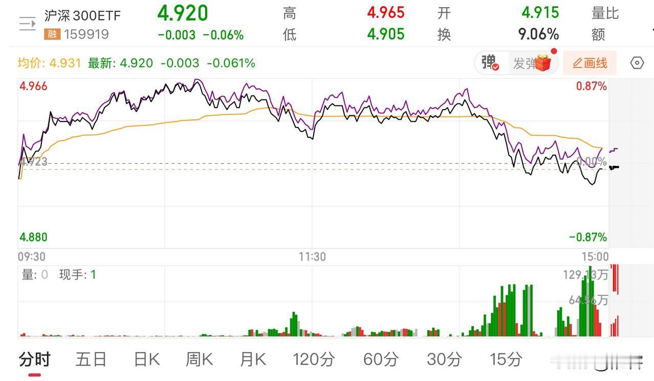 尾盘宽基ETF再现天量成交,以此同时伴随着的是指数再一次跳水(见以下两张图对比上