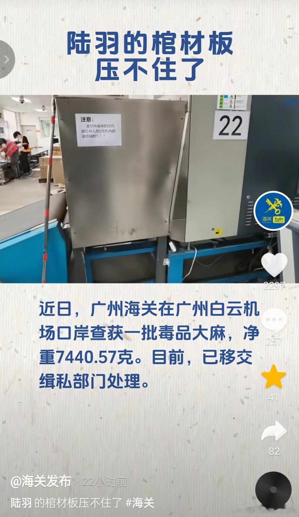 🔻海关查获一批毒品大麻,净重7440.57克。