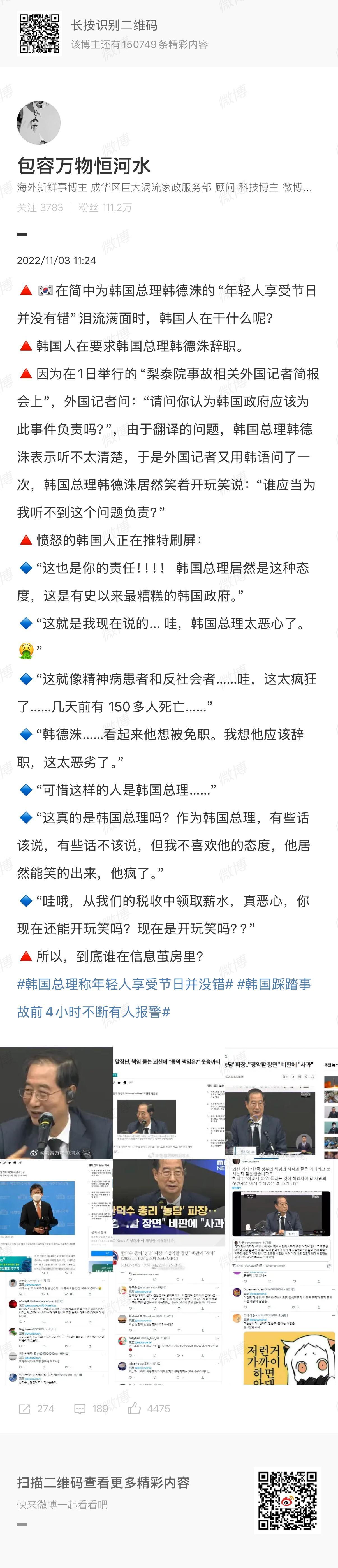 🔻这个被判23年的韩德洙,是韩国历史上第10次因总统遇刺和弹劾而运行代总统权力的韩德洙,是梨泰院事件中嬉皮笑脸的韩德洙,也是自称“愿意喝福岛核污水”的韩德洙。韩国前总理韩德洙被判23年热点现场海外新鲜事