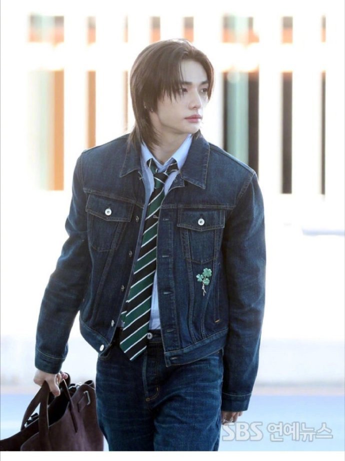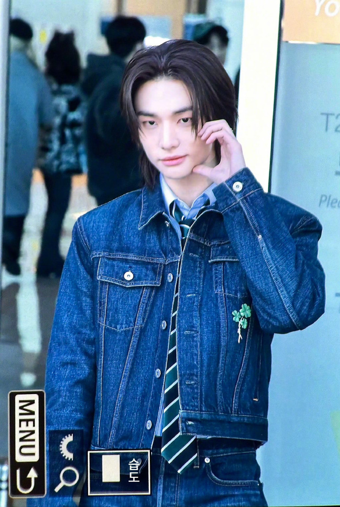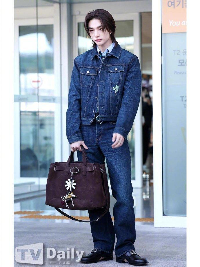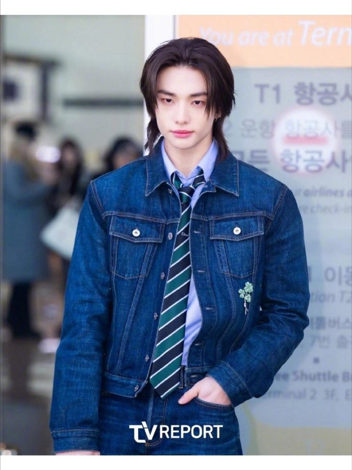 巴黎男装周正式启幕,Stray Kids成员黄铉辰亮相Dior 2026-2027秋冬男装秀,机场造型以Dior夏季丹宁套装搭配条纹领带率先吸睛,长发造型尽显清冷气质,演绎品牌复古与现代交融的独特风格,秀场表现值得期待!巴黎男装周DIOR大秀