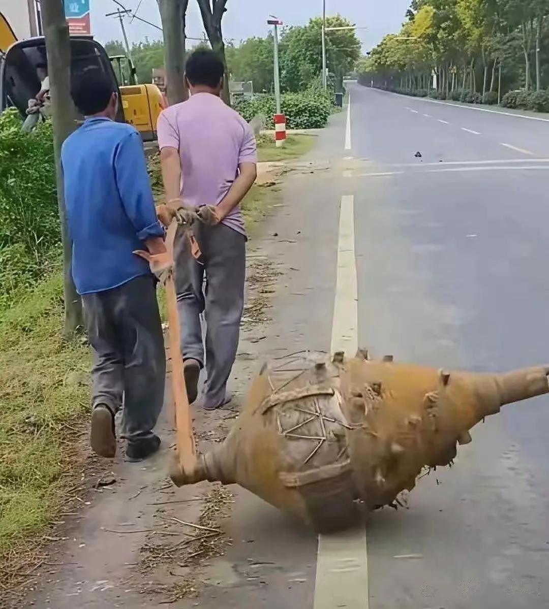 地里挖出来一个奇怪的东西,看着像古代猛将用的大铁锤一样,准备拉到废品站卖了,有谁知道这是啥吗?