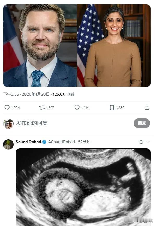 美国副总统万斯宣布,他和40岁的妻子即将迎来他们的第四个孩子。据说怀的是个男孩,预产期在今年七月份。 这个消息一经公布,万斯的评论区直接成了网友的斗图现场。很多人把万斯的那个经典图像,p进了B超图中。还有各种万斯模样的搞怪图,也出现在万斯的评论区。 美国二当家万斯 美副总统万斯 老美副总统万斯