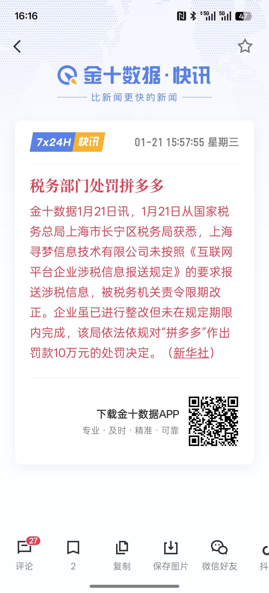 这一次,税务部门处罚拼多多,拼多多直接被罚款了!在拼多多买东西的基本上很多都是比较喜欢便宜点!说实话,我特别不喜欢在拼多多上买东西!有很多都是低廉价格,但东西不好! 尤其是拼多多喜欢拉人头,搞拼多多砍东西!有的拼多多上的东西质量有欠缺!要好好把关一下!