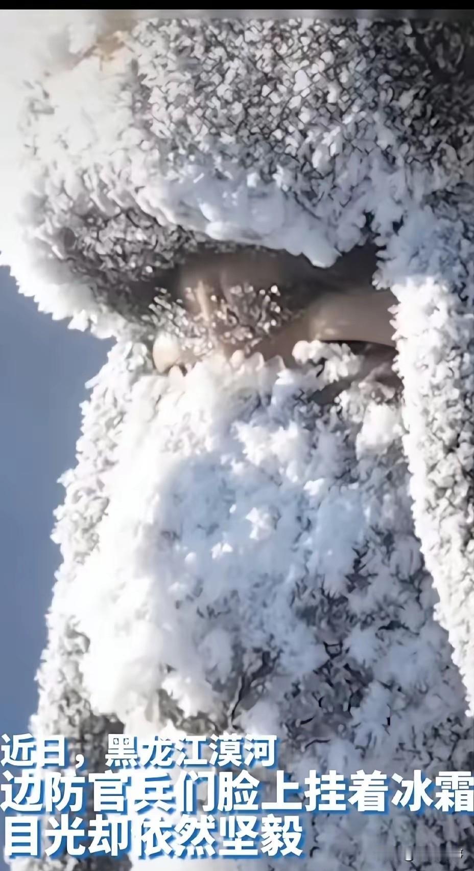 泪目致敬! 这就是咱祖国最可爱的人! 黑龙江漠河洛古河边防连的官兵们,守在祖国最北的边境线上,这里极端低温能到零下53℃,天寒地冻的日子里,他们依旧日夜坚守、刻苦操练。 寒风刮在脸上像刀子,没一会儿睫毛就结满冰柱,脸上覆着厚厚的寒霜,可战士们的眼神始终坚毅,手握钢枪、守护边疆,心里装的全是祖国和老百姓的安宁。咱能安安稳稳过日子,享受万家灯火的幸福,全靠他们在极寒之地替我们负重前行,用热血扛住刺骨严寒,用坚守筑牢家国屏障。 看着他们冻得结霜的脸庞,真的又敬佩又心疼!好在军队和地方一直都在为子弟兵研发升级极寒专用防寒装备,全力做好后勤保障。向所有边防官兵道一声辛苦了!你们是祖国的铁壁,是百姓的守护神,一定要保重身体、平安顺遂!祖国和人民永远记着你们的付出,永远为你们骄傲!
