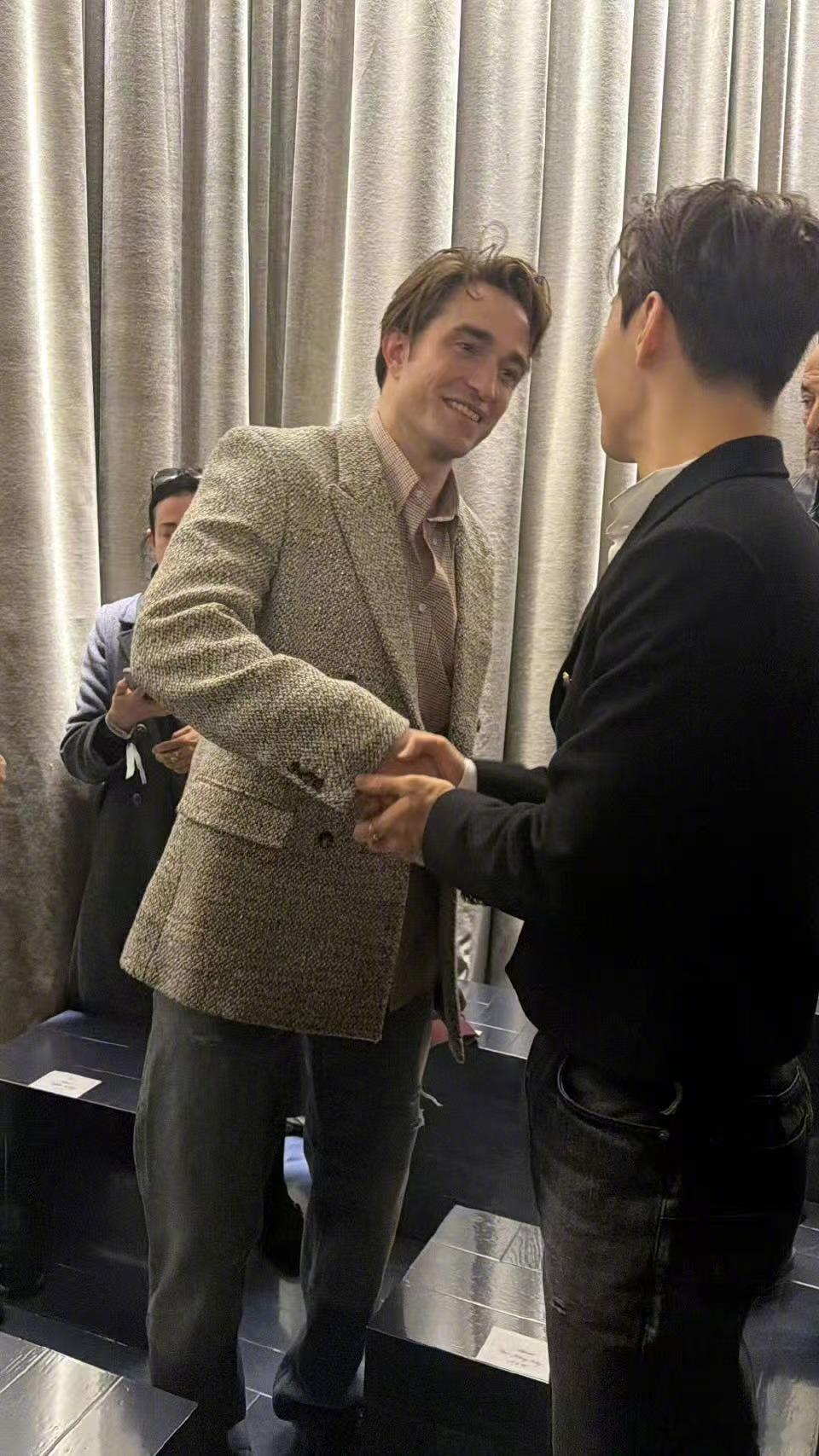 刘宪华和暮光之城男主同框 刘宪华与暮光之城男主在秀场惊喜同框,两人并肩贴贴合影,还亲切握手打招呼~