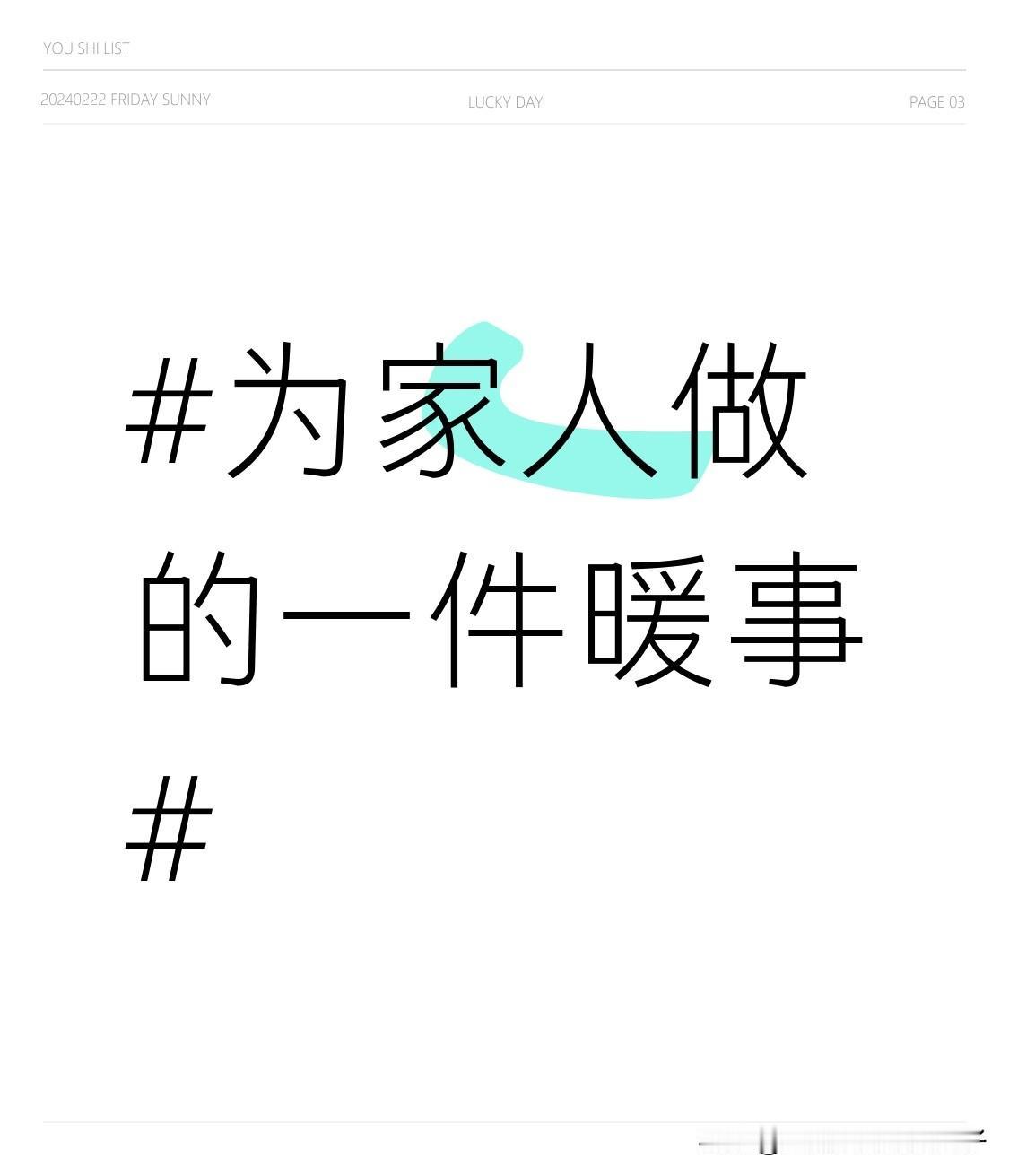 为家人做的一件暖事 之前父亲生病住院,我决定为他做件暖事。我回忆起父亲五次建房的奋斗历程,那些他为家打拼的画面不断浮现,让我更坚定了要好好照顾他。在他住院期间,我每天早早到医院,给他带他爱吃的早餐,陪他聊天解闷,给他讲外面的新鲜事儿。晚上等他睡了我才离开。我还会在网上找各种适合他病情的食谱,变着花样给他煲汤。他看着我忙前忙后,眼里满是欣慰。我知道,这些小小的举动虽平凡,却能让他感受到我的爱和关心。