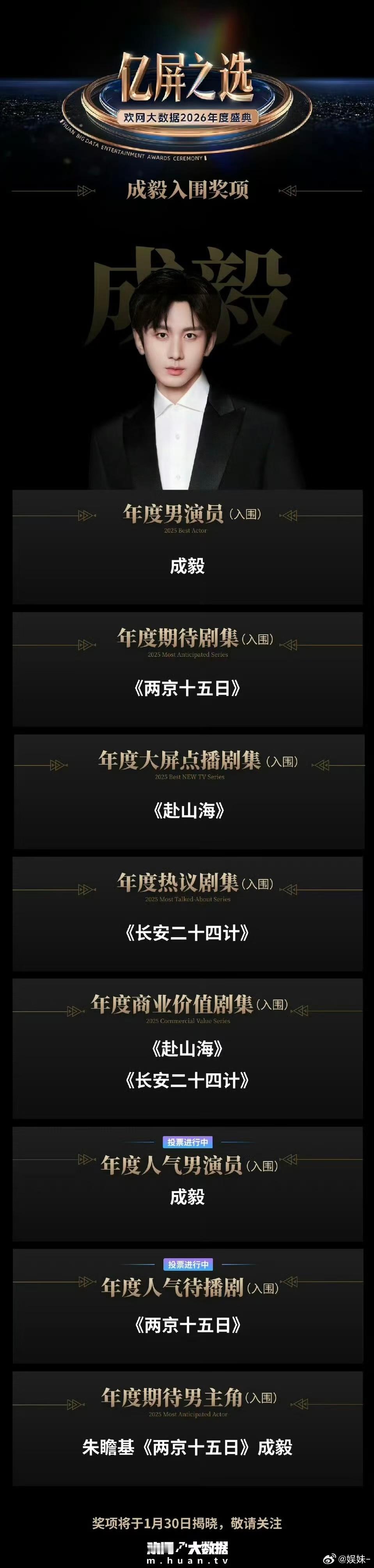 成毅一人包揽就九项提名,你就说权不权威吧!