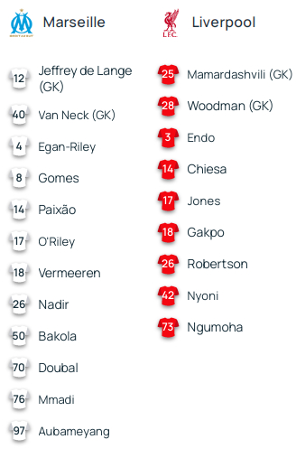 马赛租借了阿森纳小将伊森·恩瓦内里,自然赶不上今晚的比赛(就像盖伊转会曼城只能参