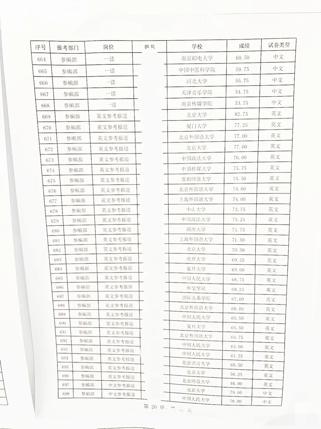 👆上图为往届新华社笔试成绩名单公示,也是唯一一年线下公示成绩(来自网友)