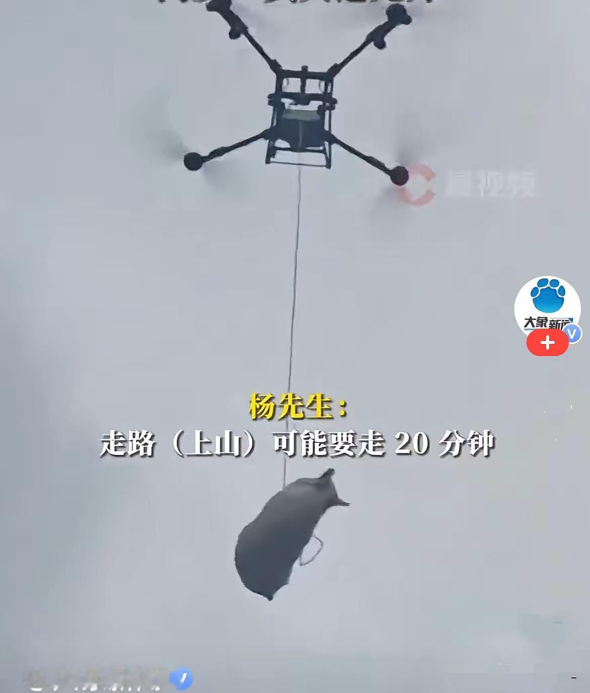 广西百色的杨先生竟用无人机吊运重180斤重的活猪。 不然靠人力搬运需要20分钟,用无人机1分钟就到了,省时又省力。无人机那么小那么轻能吊起那么重的猪吗?可真别小瞧无人机,它能吊起250斤重的东西,相信科技的力量! 有网友评论:真应了那句:风来了,猪都能上天 猪的到站的感言:论降落伞和体能心脏好和入保险的重要性。 对此,你怎么看?