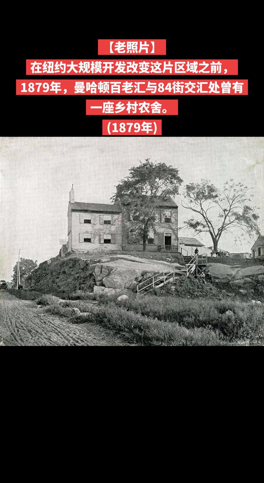 【老照片】在纽约大规模开发改变这片区域之前,1879年,曼哈顿百老汇与84街交汇处曾有一座乡村农舍。 (1879年)