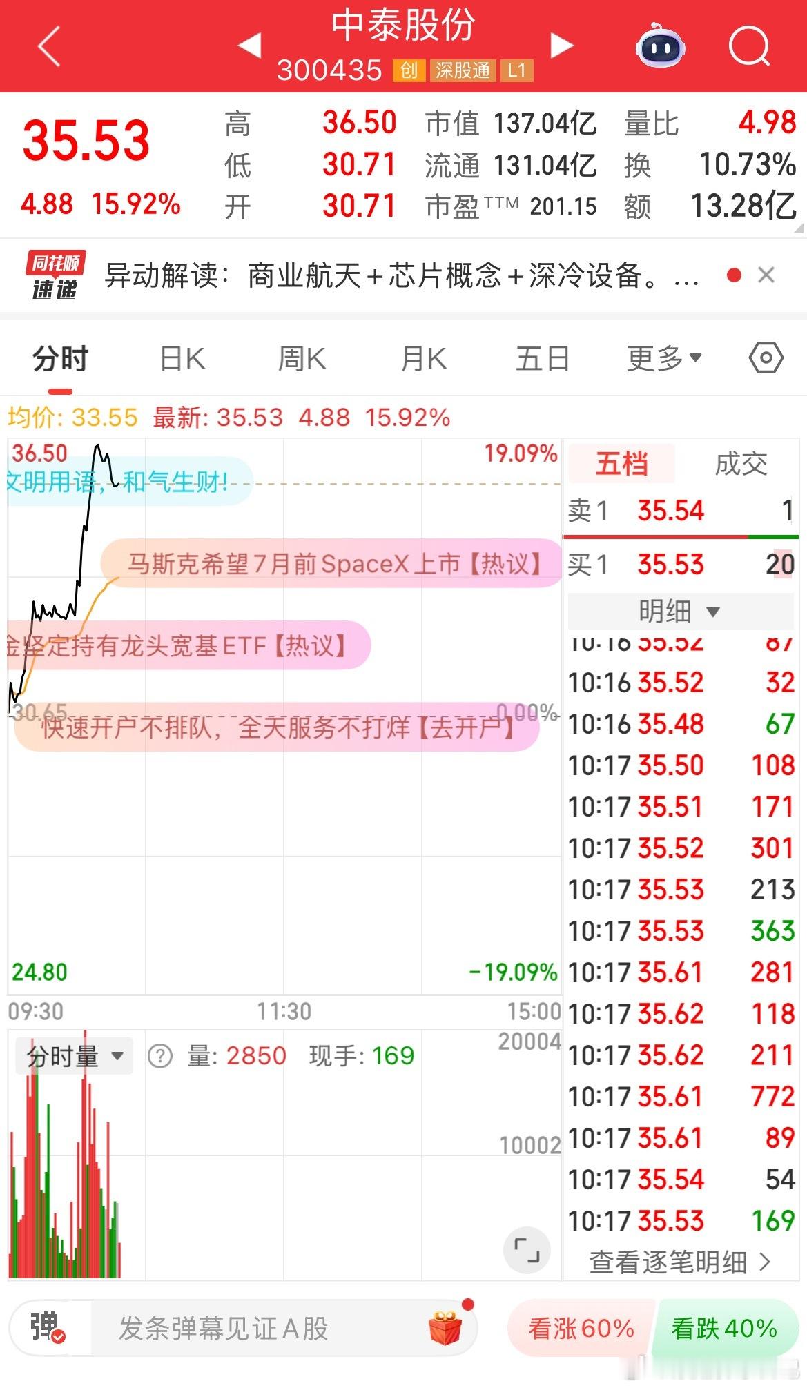 宝子们,300435中泰股份这波起飞信号,我早早就喊大家上车了!🚀这票的逻辑很硬,叠加了氢能源+天然气的双重风口,近期量能持续放大,主力资金抢筹痕迹明显,妥妥的潜力黑马。恭喜跟上节奏的老铁们,今天又是稳稳吃肉的一天!炒股就是要快人一步,提前埋伏,等风来的时候才能稳稳拿住收益。还没上车的宝子别慌,重点盯紧后续回踩机会,这波行情还没结束!吃肉的兄弟评论区冒个泡,留言168,让我看看有多少跟上的!