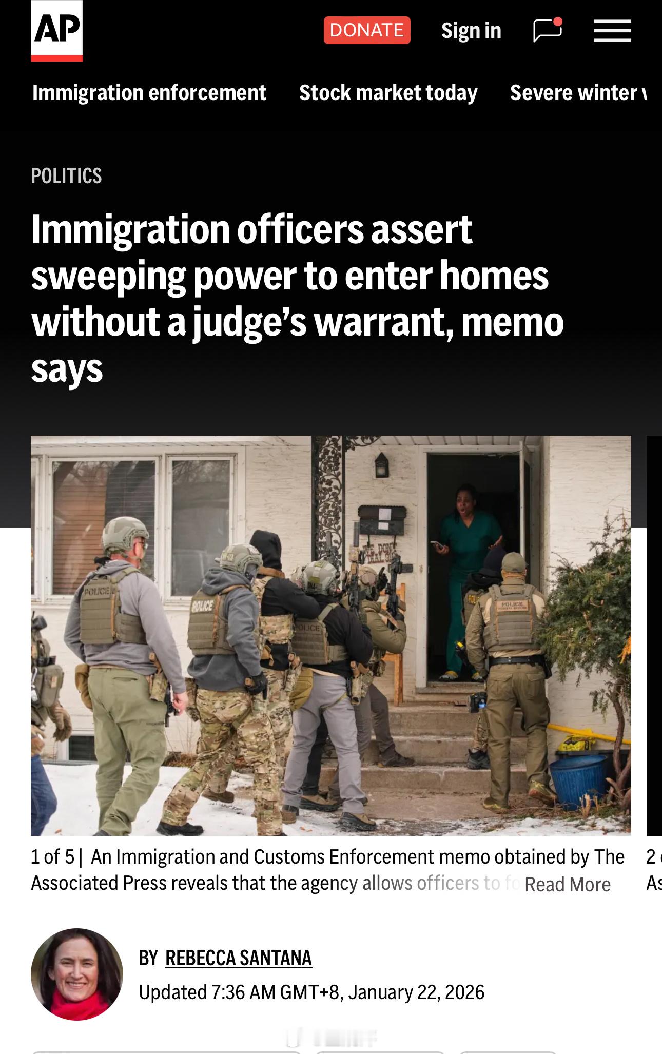 美联社:美国ICE现在可以在没有法官签发的搜查令情况下强闯民宅。唉,风能进雨能进国王不能进😭唉,私有财产神圣不可侵犯😭唉,三权分立😭