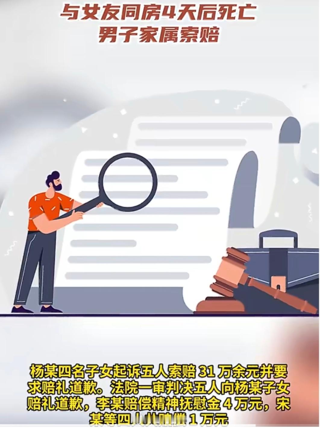 与女友同房4天后死亡男子家属索赔当时我就震惊!在杨某生命垂危之际,李某的冷漠与不作为令人发指,不第一时间急救,还叫来朋友折腾,甚至对120撒谎,将病危之人送回家就不管不顾,这哪还有一丝人性和道德?宋某等虽有提醒之举,但后续协助错误操作,同样违背公序良俗。法院虽因证据不足未支持死亡相关赔偿,但判决赔礼和精神赔偿合理且必要。生命面前容不得丝毫懈怠,每个人都该有基本的良知和担当,这种漠视生命的行为必须受到谴责和法律的约束。