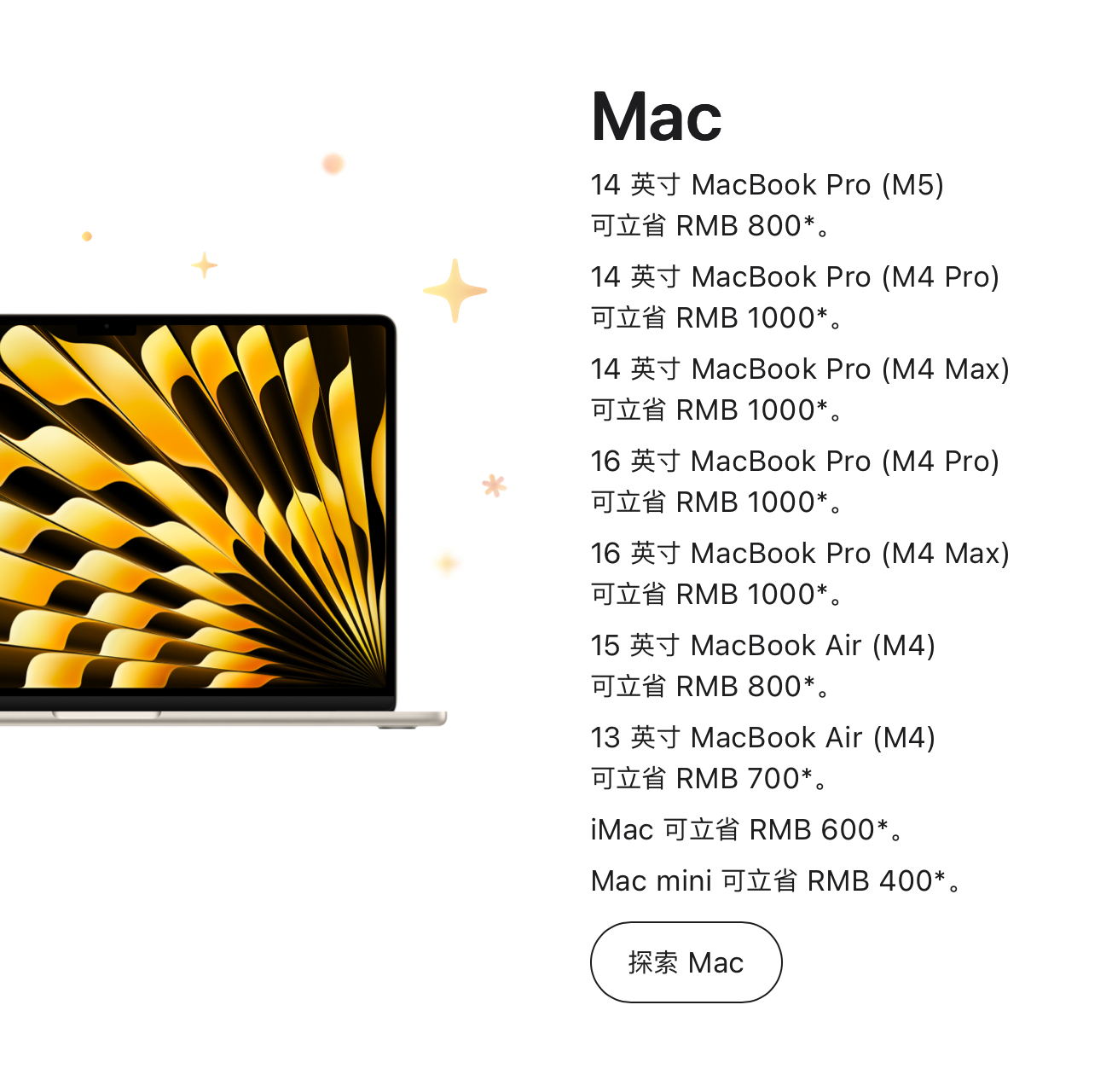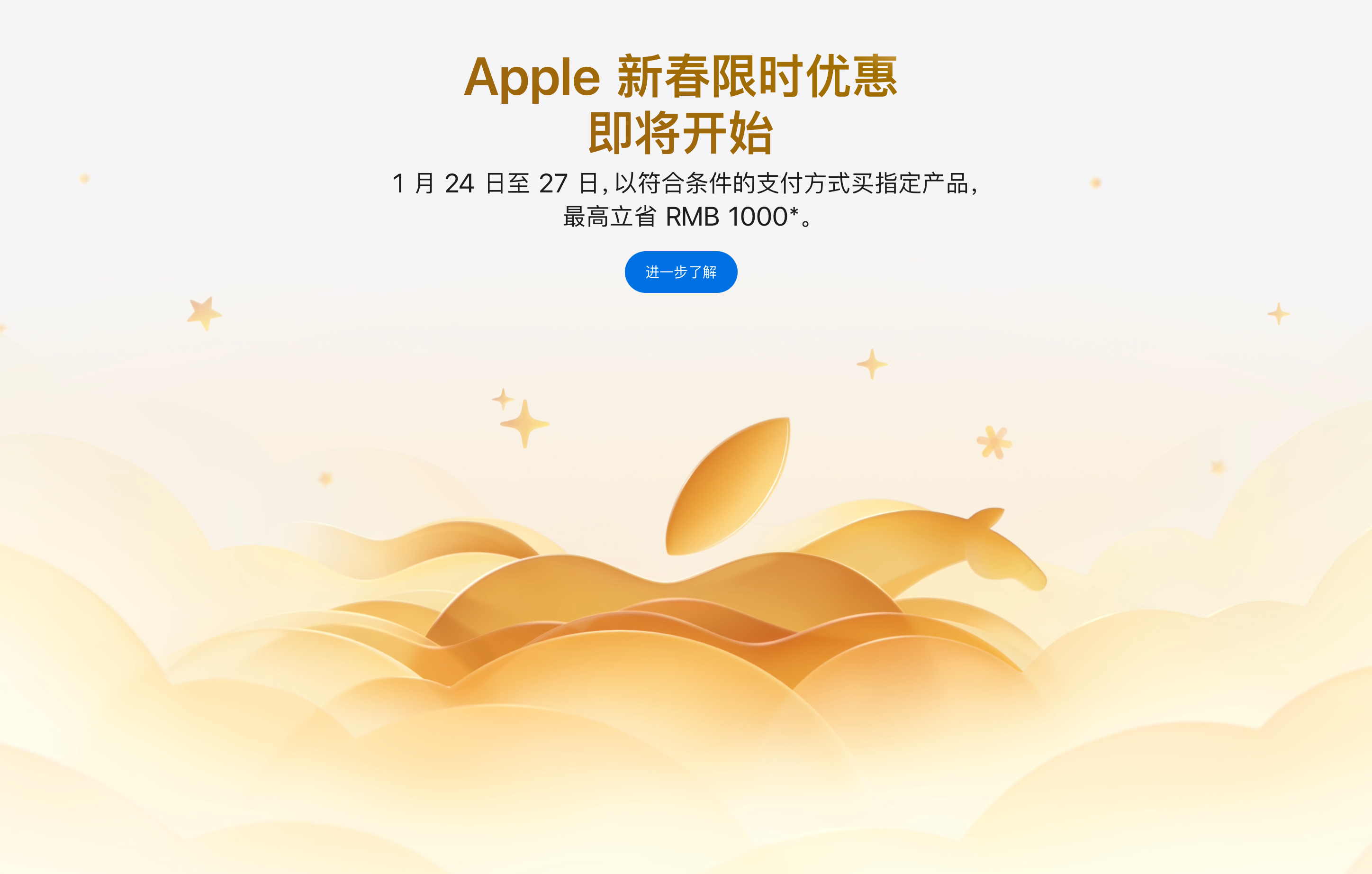 好消息,苹果官网开启新春优惠了,最高立省1000。坏消息,没有17系列。不过,没有就没有吧,这个最高也是Mac产品才有。但就算官网这个优惠,还是比电商平台高。想起来前几天一位朋友刚在官网入手了MBA,9K+,正在开始美滋滋。结果被另一位朋友提醒,电商平台官方加国补,只要6K+。顿时,美滋滋不起来了好在最后还能退了,然后重新电商平台国补下单。所以官网这个价格就算优惠了,还是没那么香~苹果回应iPhone17不参加新春优惠