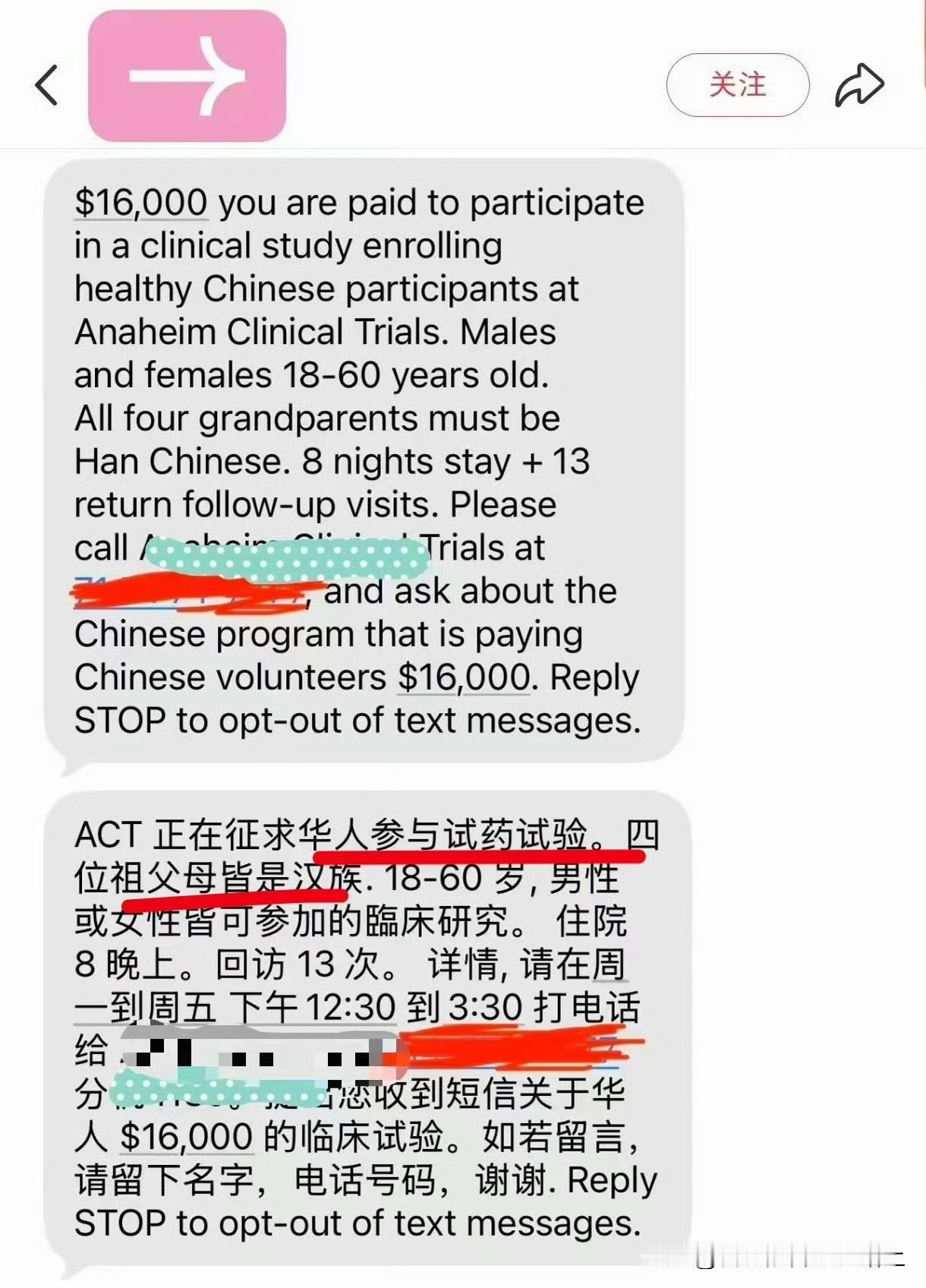 真炸裂!老美征集华人测试药物,而且必须祖上全部都是汉族!!!这是要干嘛?他们想干啥?就不干人事!真的不能细想!属实太恐怖了!