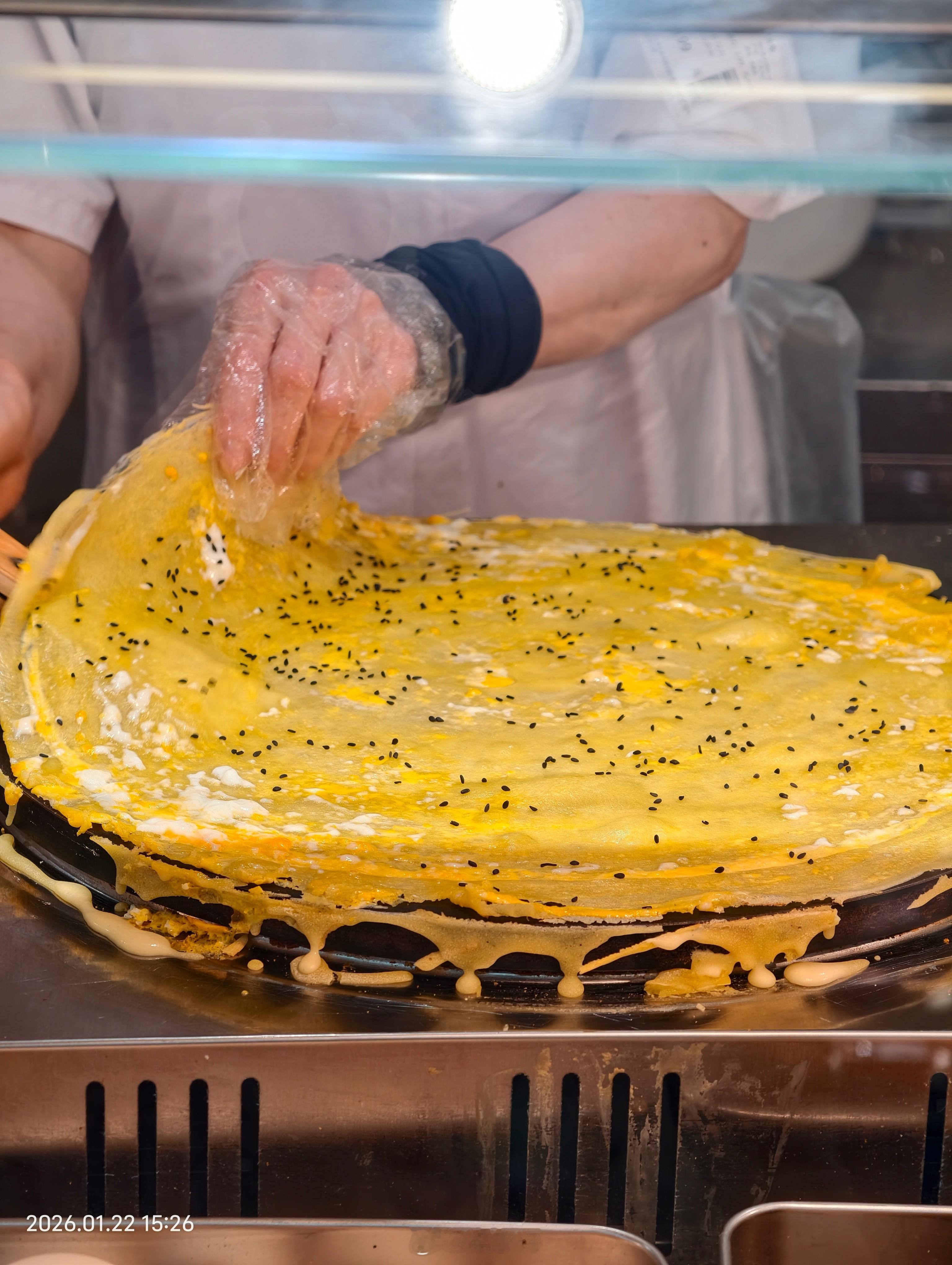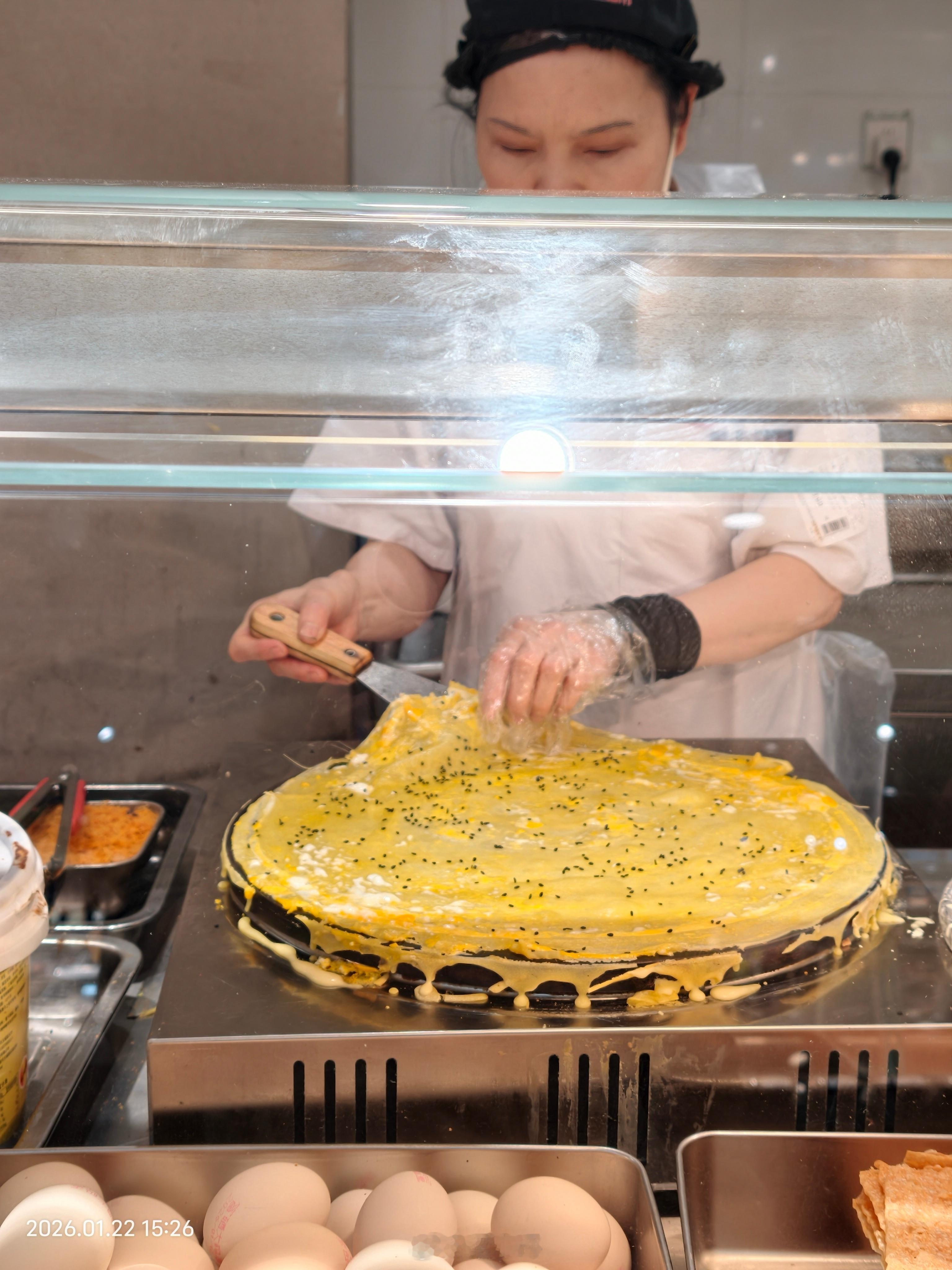 看到煎饼果子,想起来有一次在街边买个煎饼果子,那个阿姨手很脏,没有戴手套,直接拿饼然后加上开配料包装的时候手刮了点血,直接把手指放嘴巴里面,我支付了费用,拿到煎饼果子直接丢了。从那次之后买煎饼果子只去超市了