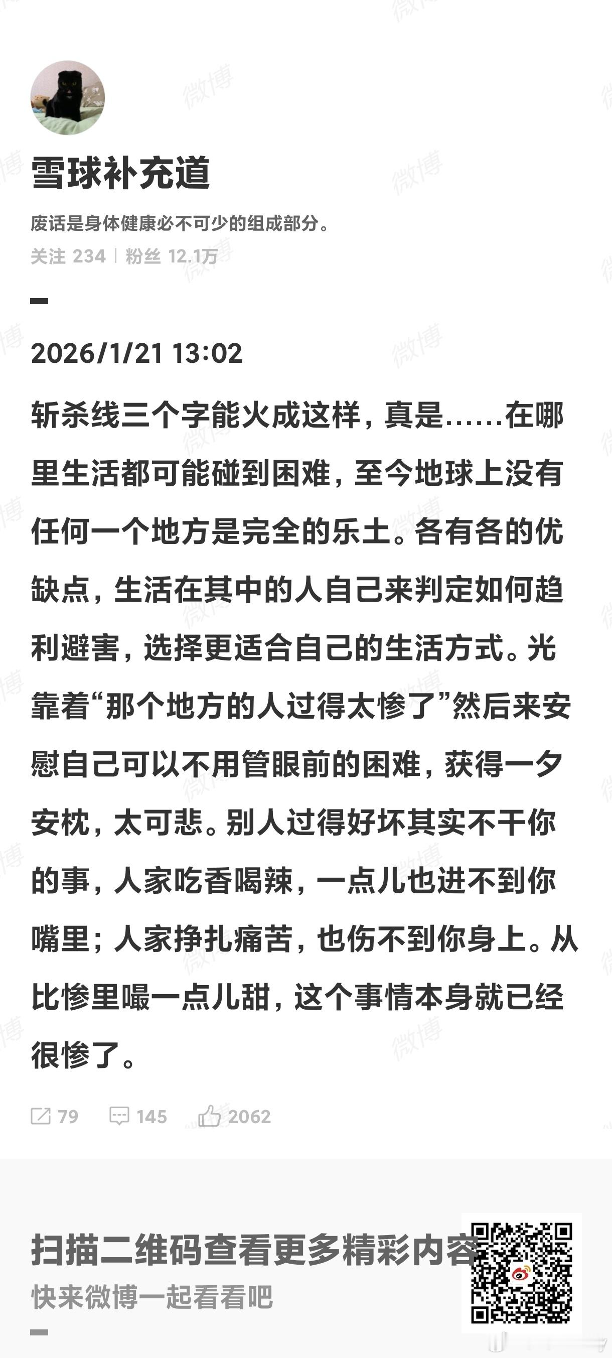 拳殖一体果然是真的,这位对斩杀线的理解简直到了令人忍俊不禁的地步。一个用来描述整体的、系统的制度性困境,被她理解为……算了,这个智力水平可能真就是长期打拳导致的。