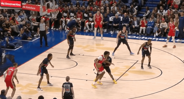贾文特-格林观察:14分钟贡献3断1帽,防守&活力助队取胜图1格林身处篮下护框位置,见皮维沿底线突破过掉霍兰德直杀篮下准备起跳攻框,立即起跳单手大帽镇守禁区。图2格林肘区一对一单防奎因,在奎因合球准备衔接转身动作的瞬间立即下手精准将球掏走。图3随即跟进转换进攻,无球走位至强侧45°获得空位机会,接邓罗回传三分稳稳命中。一攻一防帮球队把比分优势扩大到9分。图4普尔和米西发动挡拆配合,行进间格林守高位沉退并封堵普尔直线突破路线,在普尔回给顺下米西后格林再迅速归位,对抗紧贴后预判到米西终结步点,在其起跳终结的瞬间直接下手将球切掉。图5退防过程中见普尔长传上球给前场麦格文斯,格林趁其不备在麦格文斯接到球的瞬间迅速上前将球破坏。图6控制住球权后随即推动反击,前场2打1接萨瑟回传空篮球轻松扣进。图7萨瑟投篮偏出,格林见篮板球飞出界外立即上前飞身救球尝试拼抢球权。图8强侧底角接斯图尔特短传上球,三分抬手就进。NBA