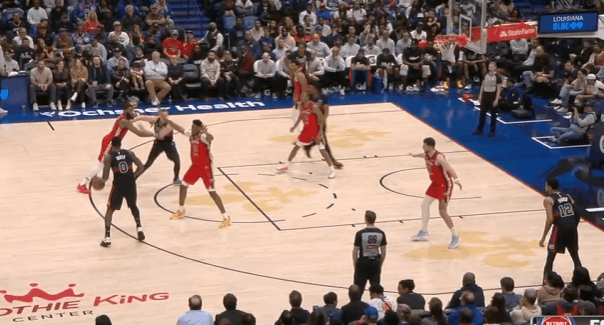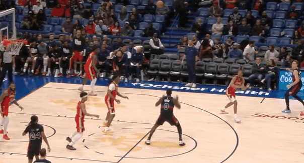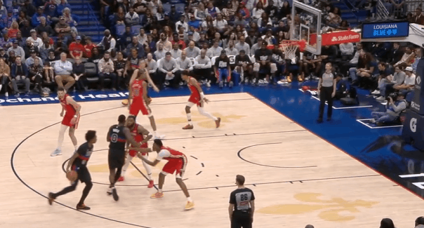 杜伦观察:疯狂掠夺篮板&施展面框技术,高效20+15率队取胜图1奥萨尔突破转身小抛投不中,杜伦立即冲向篮下面对油漆区4名鹈鹕球员高高跃起双手补扣得手,完成一抢四。图2杜伦拖车跟进后立即和奥萨尔发动挡拆配合,高位沉退的奎因防守注意力被奥萨尔吸引,杜伦下顺抢出身位优势后接奥萨尔高吊传球双手空接暴扣得手,打穿奎因身后。图3杜伦三分线外拿球发牌见队友没跑出机会,决定自行持球小秀一把面框技术:胯下变向启动右路突破,行进间发力对抗撞开防守人后再衔接胯下拉回做突左路的假动作,实则撩起手臂合球的同时向右前方上步,佯装起身终结点飞奎因后右脚上步完全摆脱,随即轻松上篮得手。图4杜伦和奥萨尔的边路挡拆被鹈鹕换防破解,随后前去弱侧幽灵区埋伏为奥萨尔创造清空一侧单挑的环境。见奥萨尔跳投不中,杜伦立即利用力量优势在篮下牢牢卡住贝,随后高高跃起摘下前板。图5杜伦接托哈传球后弧顶面框持球硬解:in&out衔接Crossover的小连招直接过掉奎因,合球后躲过双人刷卡随即一记反篮“回头望月”稳稳放进篮筐。图6詹金斯接球后“抱着炸药包往里冲”,杜伦见其抛投不中立即冲向篮下,推开马特科维奇后起跳掠夺到前场篮板。图7拖车跟进接奥萨尔上球后顺势启动突破,行进至肘区大力炸球后合球直接大跨步过掉米西杀入篮下,随后小抛投终结稳稳放进。图8杜伦持球单打米西终结遭受干扰,随即在奥萨尔一次点抢后掠夺到前场篮板,虚晃点飞米西后立即抓节奏差起后仰抛投打进。NBA