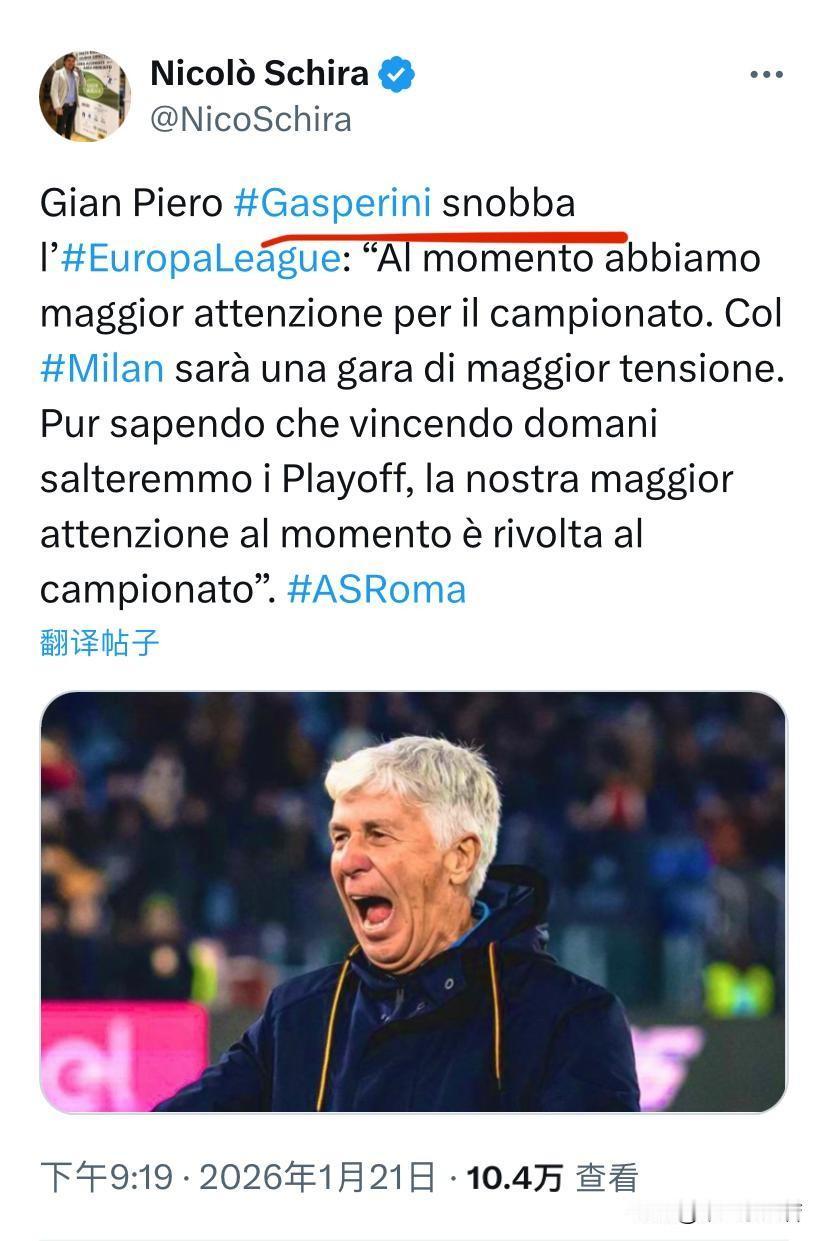 何仇何怨啊。加斯佩里尼接受采访表示对阵米兰会全力以赴,哪怕欧联杯晋级不顺利,也要