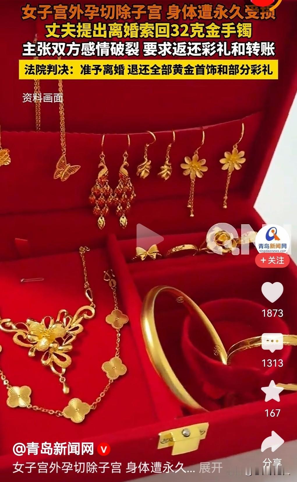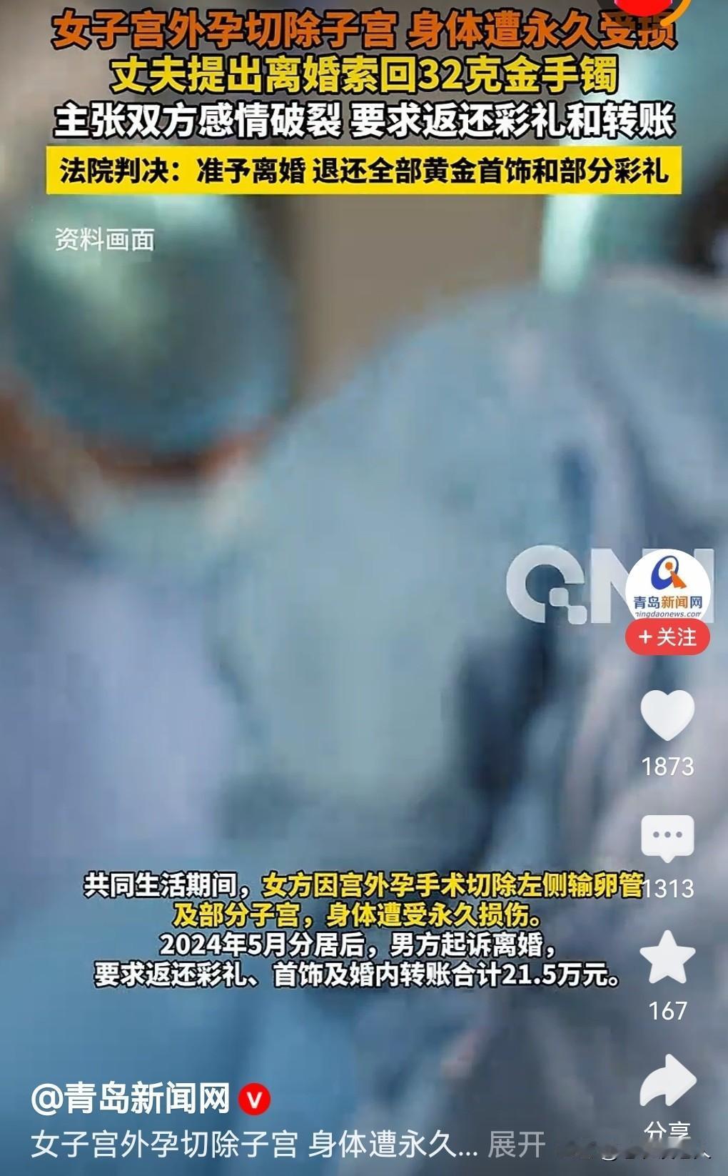 妻子切除子宫,丈夫要求离婚,索要彩礼和黄金首饰,法庭判了 女子因宫外孕切除子宫,丈夫估计妻子失去生育能力,以感情破裂为由,向法庭起诉要求离婚,并索要彩礼和黄金首饰,一场离婚案闹上法庭。 据媒体报道,男子小颉,在二0一九年经媒人介绍,认识女子小刘,于二0二一年举办民俗习惯订婚和结婚礼,到二0二三年补办结婚证,共同生活大约两年时间,没有生育孩子。小颉为了结婚,给女子小刘彩礼和见面礼共14万元,并购买黄金首饰4件。 小颉和小李一起共同生活期间,因小刘宫外孕,夫妻共同接受了医院手术,已经切除左侧输卵管和部分子宫,妻子身体遭受了损伤,已经失去生育能力,不能再怀孕了。 从二0二四年四月夫妻开始分居,丈夫以感情破裂为由,向法庭起诉,与妻子离婚,要求妻子返还包括手机转账的款项等各类款项共计21.5万元。 妻子小刘认为双方还存在有夫妻感情,并未完全破裂,只是为离婚找借口而已,并且自己因宫外孕手术切除部分子宫,不能继续生育,考虑到未来无子养老问题,坚决不同意与丈夫离婚。 法庭通过调查审理后,依据相关法律法规认定,夫妻因家庭生活琐事,产生矛盾日积月累过多过深,并长期夫妻分居,丈夫又曾多次向法庭提起过离婚诉讼,夫妻感情判定已经到了实际破裂程度,因此判决离婚。 法庭综合评估考量夫妻共同生活时间长短问题、妻子因子宫部分切除,失去生育能力问题,以及当地婚嫁习俗问题,认为小颉要求返还全部彩礼和其它费用问题,缺乏合理依据,判定小刘返还彩礼见面礼14万元的30%,并退还黄金首饰,其它款项不予支持。 本人认为,夫妻离婚是由双方自己决定的,经济问题,应该同情弱者为原则,女方因怀孕导致子宫部分切除,身体受到伤害,无法再怀孕生育,男子理应承担一半责任,不能让女方吃亏太多,有失道理。既然判决夫妻离婚,男方从道德层面上,不应该要女方退还彩礼钱和黄金首饰,要考虑女子未来不能生育的情况,而导致生活悲惨凄凉的一面。 所以,本人认为男方应该从道德和感情方面,给予女方一定的经济补偿,弥补女子失去生育能力所带来的一系列问题,是非常必要的,也是合情合理的,同时也符合传统婚俗习惯的。 以上是本人观点,如有不妥,请大家在留言此处留下你宝贵的意见,并积极参与评论。特邀请大家关注婚姻问题。