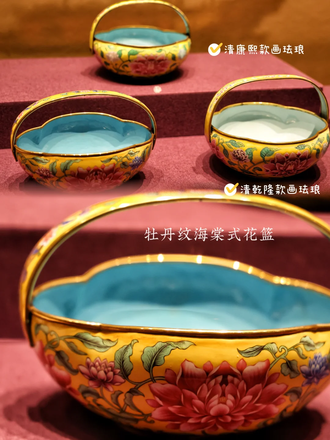💗乾隆爷的审美:画珐琅牡丹纹花篮,工艺复杂精致,皇家与外销结合的精品。