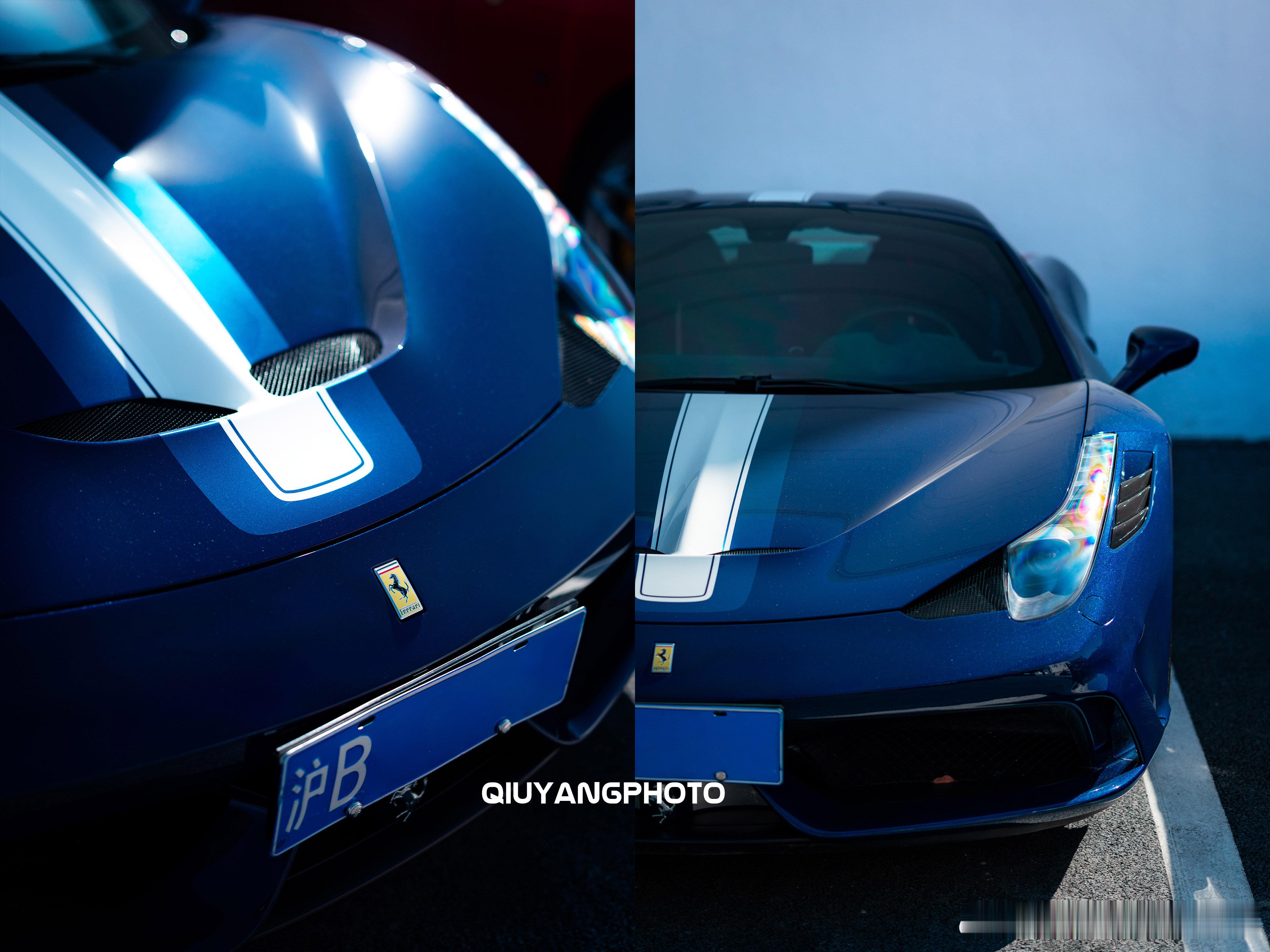 Ferrari 458 Speciale Aperta cars01豪车拍全民拍车 大概率是Blu LeMans车漆搭配Blu NART拉花,银轮,蓝卡钳 完美的Spec 上海