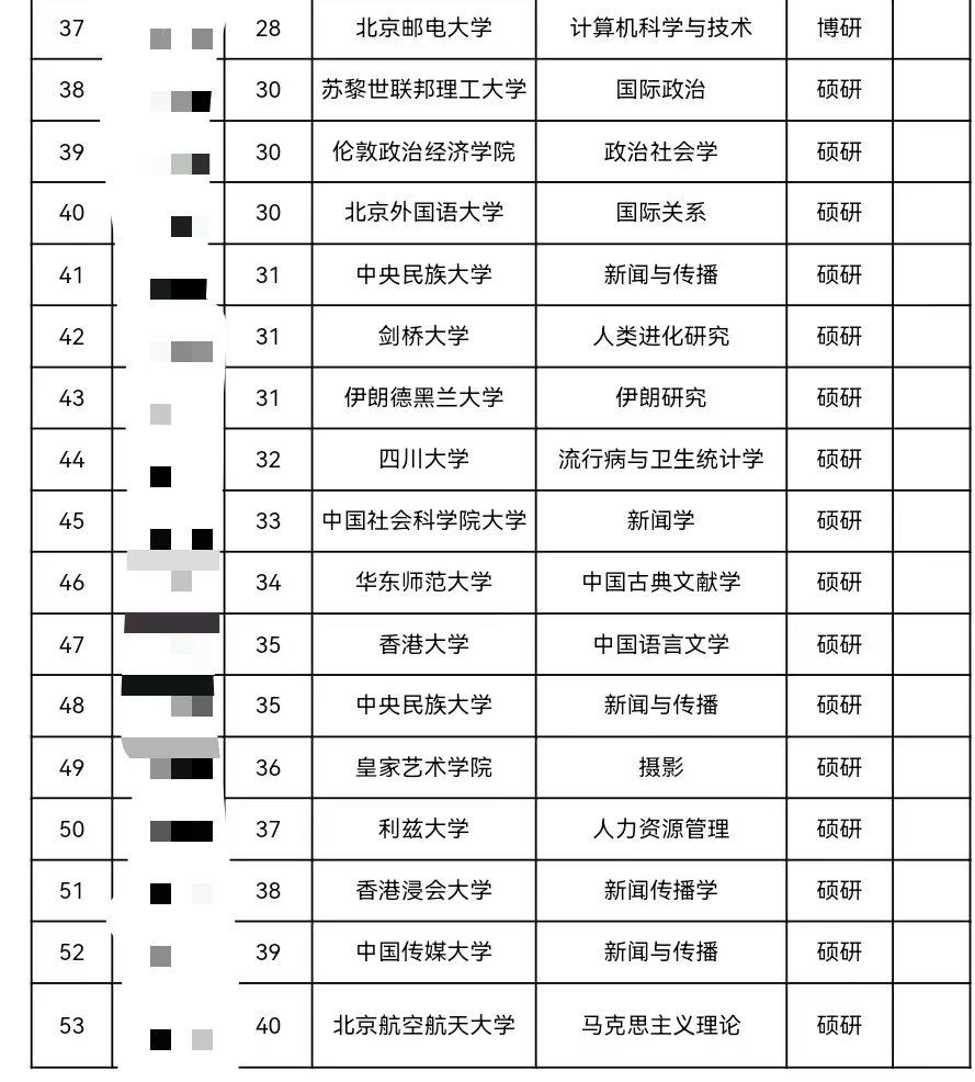 👆以上是2025届人民日报社录取名单,去年的招生情况和今年一样,都是招聘64名工作人员。从录取名单上可以看出,学历背景都是非常优秀的,不乏清北人传复等985、211级名校,但是也有部分双非/本科同学闯入这份名单之上,因此,学历并不是唯一的评判标准。
