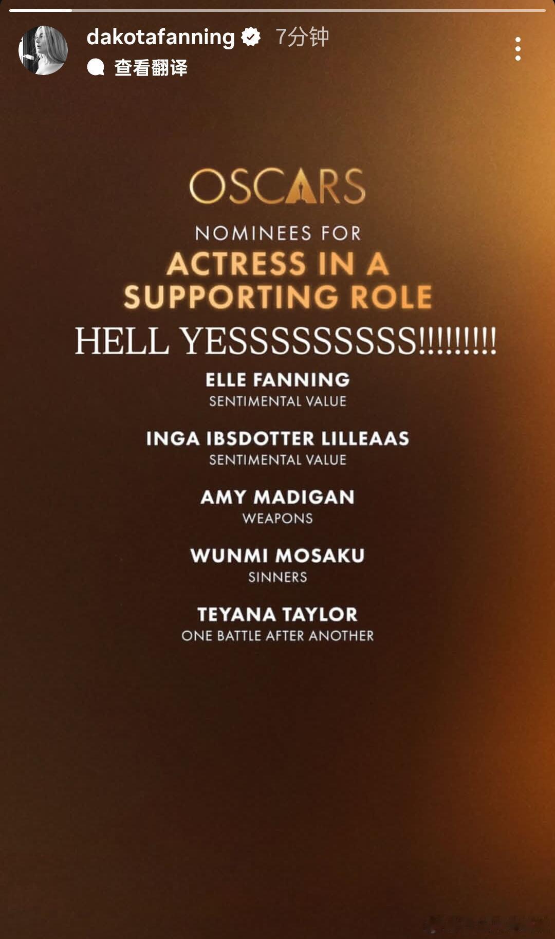 奥斯卡提名 范宁凭借情感价值提名奥斯卡最佳女配角,拿下个人首个奥斯卡提名,姐姐达科塔也发文祝贺!恭喜🎉