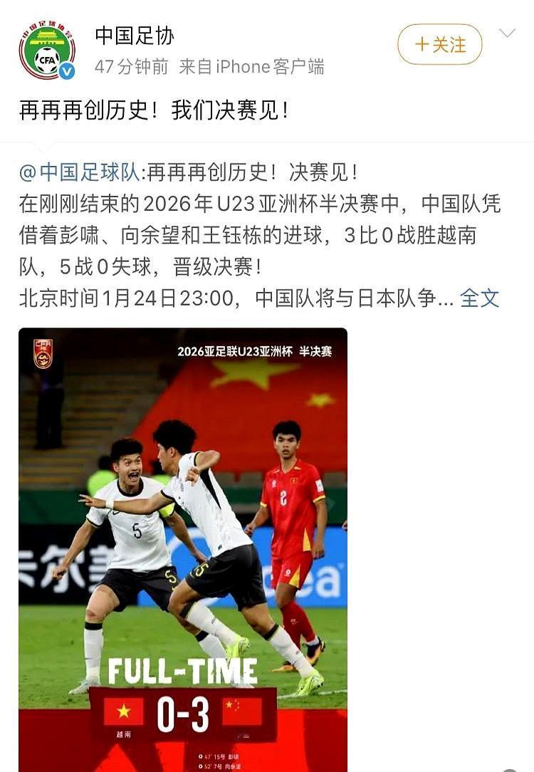 0失球杀进决赛!中国U23把不可能变成现实 从小组垫底魔咒到连克澳洲、乌兹别克、越南,五场零封,480分钟没人能攻破我们球门。安东尼奥赛前只说一句话:先让对手绝望,再让球迷尖叫。他真做到了。 秘诀拆开看就三样: 1. 中超真刀真枪练出的身体,对抗不吃亏; 2. 门将李昊+中卫彭啸,一堵墙一把刀,稳得让前锋想哭; 3. 没有出线包袱,反而敢拿球敢前压,踢出了久违的从容。 决赛打日本,输赢已不重要。真正值钱的是,这批孩子让全国球迷重新相信:只要路子对,中国人也能踢高级足球。