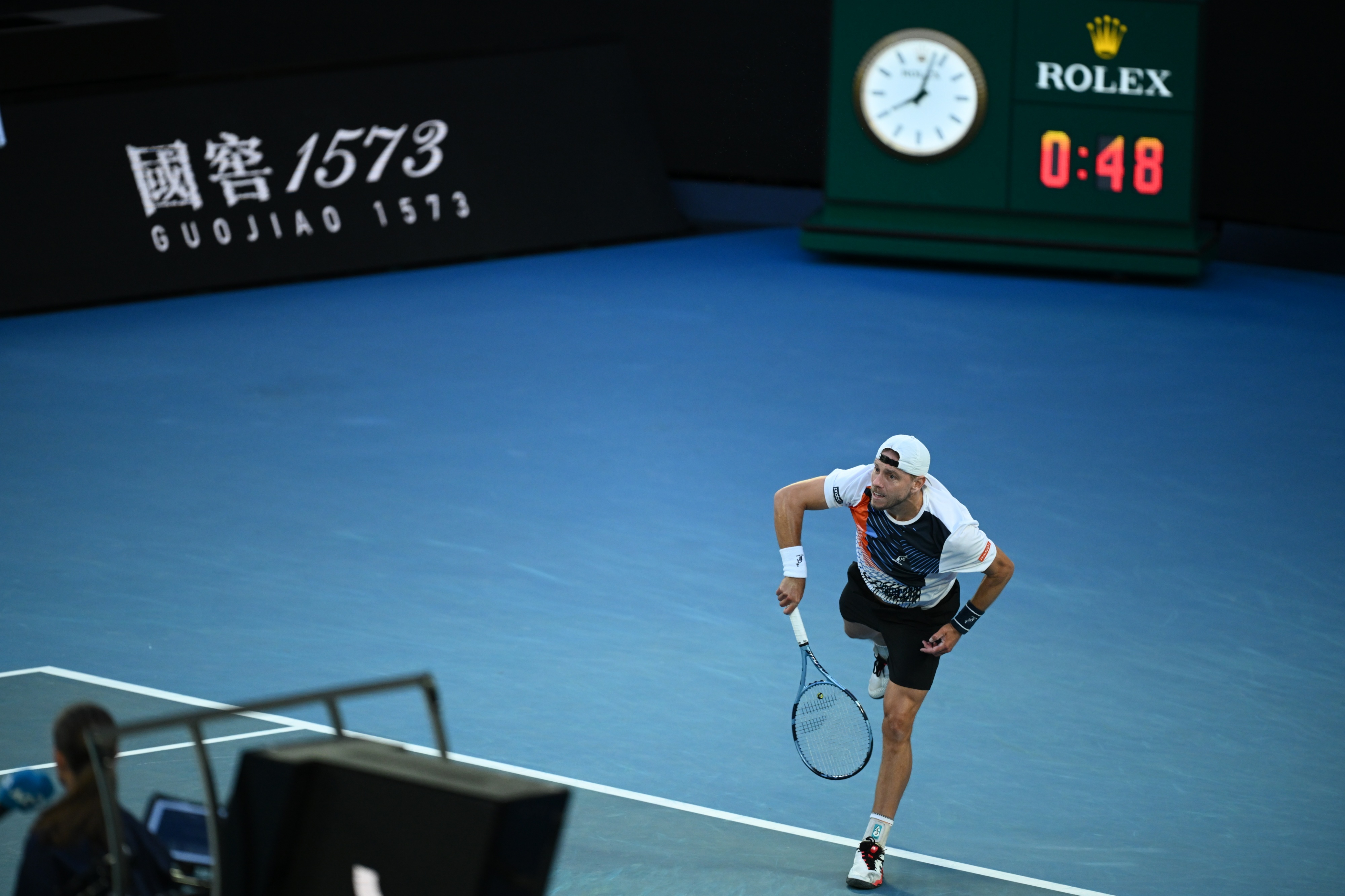 澳网2026 卫冕冠军辛纳在罗德拉沃尔球场迎战本土球员达克沃斯,直落三盘6-1/6-4/6-2轻松过关,顺利闯入32强。这很澳网辛纳澳网晋级32强