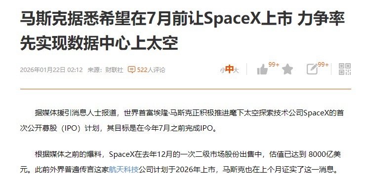 马斯克一盘大棋,正式开始了,太空算力。马斯克说今年7月前让SPACEX上市,这一上市,又是个十万亿市值的公司。对于航天这个领域,消息上主要是对乱炒,瞎炒有影响,对于真正的核心产业链。真有订单的方向,影响是不大的。比如相控阵芯片与天线,激光通信,卫星制造。火箭关键材料,这些东西都是产业链上的刚需。会随着商业航天缓缓成长。商业航天适当布局,并不能说错。这里受消息的影响。波动确实相当大。但大趋势上,航天方向,依然是大趋势。那你肯定会说,为什么要让数据中心上太空。这也是马斯克的一盘大棋。据中心 30%-40% 能耗用于制冷,2 吨重 GPU 机架里 1.95 吨是冷却设备,且需大量水资源因为太空上,24 小时无遮挡太阳能(晨昏轨道),强度比地面高 40%,发电效率达地面 6-8 倍太空是-200多度的环境,散热免费,能耗可以减少90%激光链路在真空传输速度比光纤快 40%,轨道数据就地处理,省回传带宽这么多好处,所以,马总断深挖整个太空资源。 这是必须的。不仅抢的是太空权,更是算力战略权。。。 发展太空是突破地面算力瓶颈的重要选择。所以,航天这里核心企业,依然战略性的。